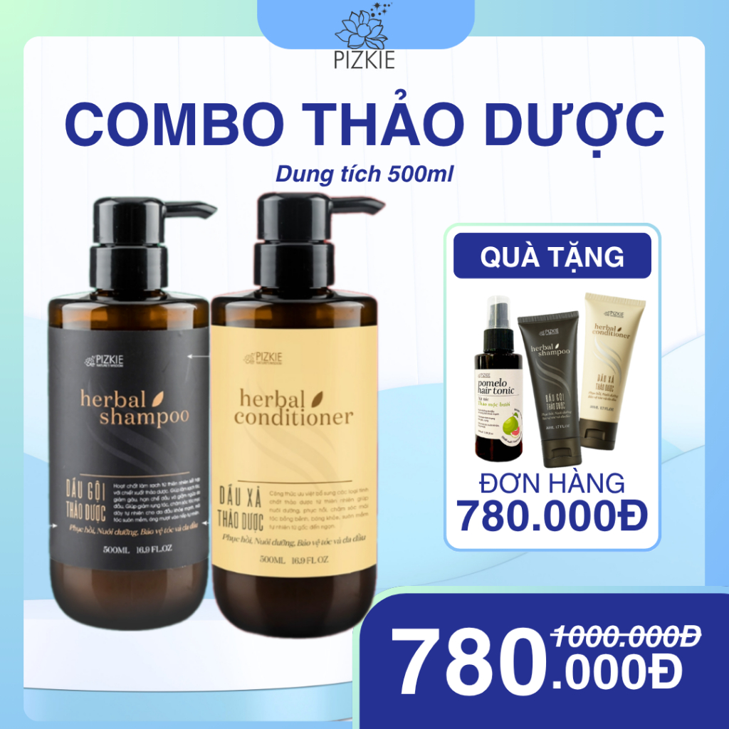 COMBO Dầu Gội Dầu Xả Từ Thiên Nhiên PIZKIE 500ML Giúp Chăm Sóc Da Dầu Chắc Khỏe