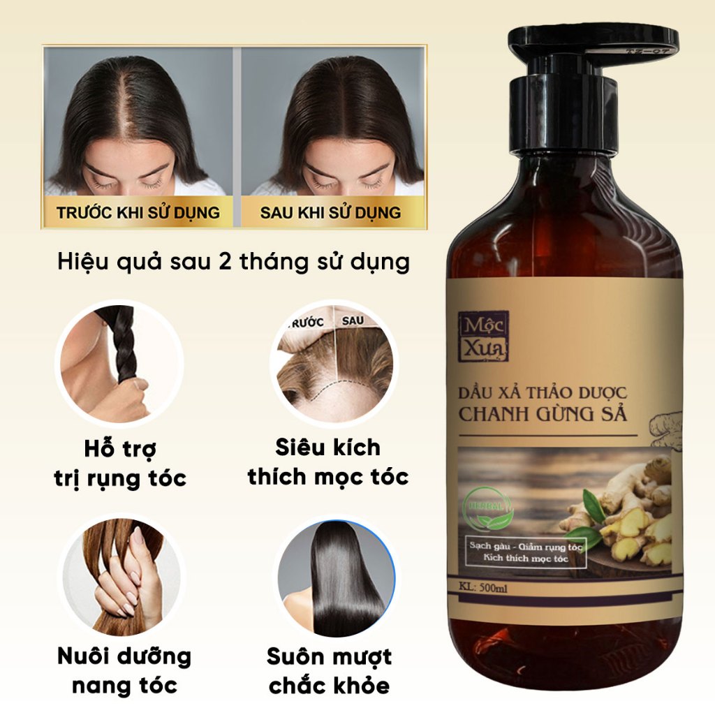 Dầu xả thảo dược tinh chất gừng, chanh sả kích thích mọc tóc, sạch gàu, giúp tóc hết xơ chắc khỏe