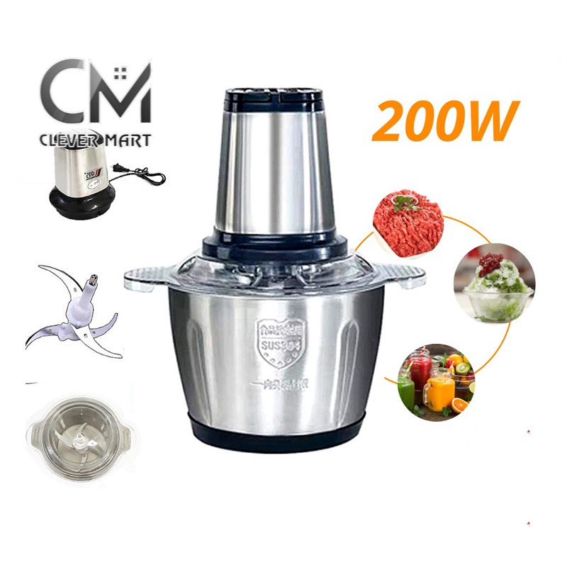 Máy Xay Thịt Cối Inox 4 Lưỡi Đa Năng, Công suất 200w xay thịt, xay tỏi ới, xay rau củ quả