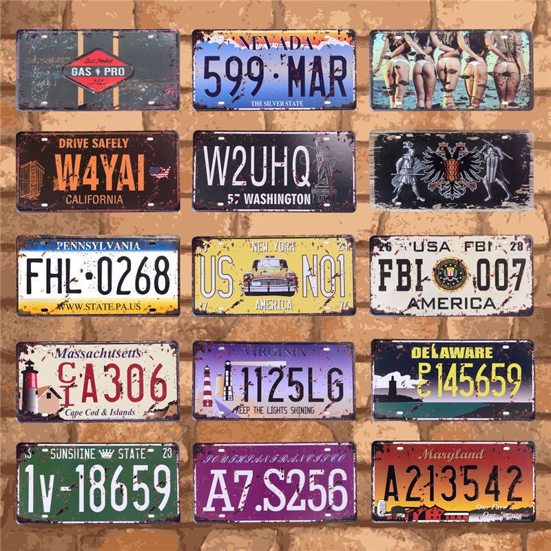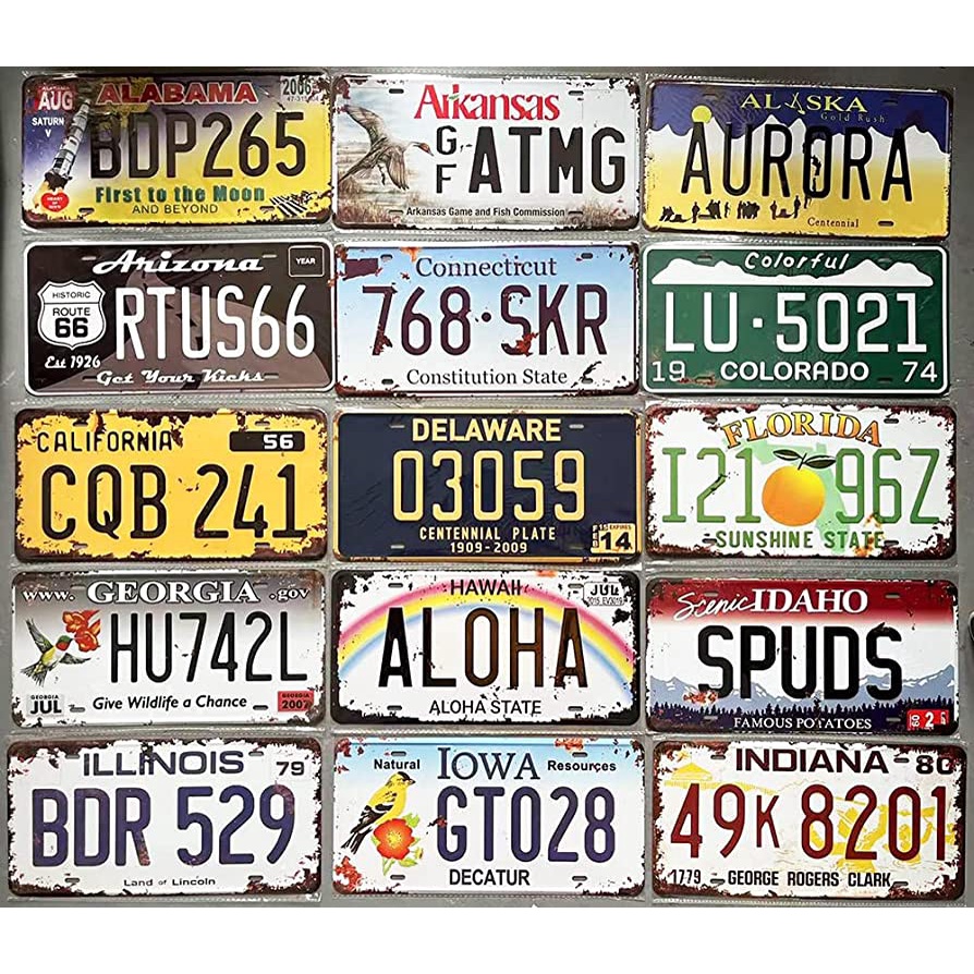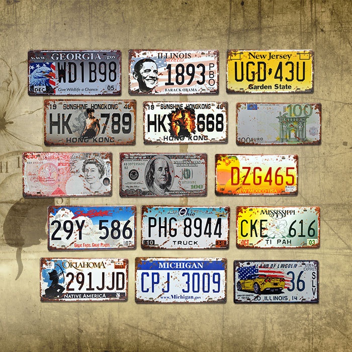 Combo 15 tranh sắt kiểu biển số xe trang tri quán cafe, bar club, quán nhậu, barber shop retro vintage hút khách