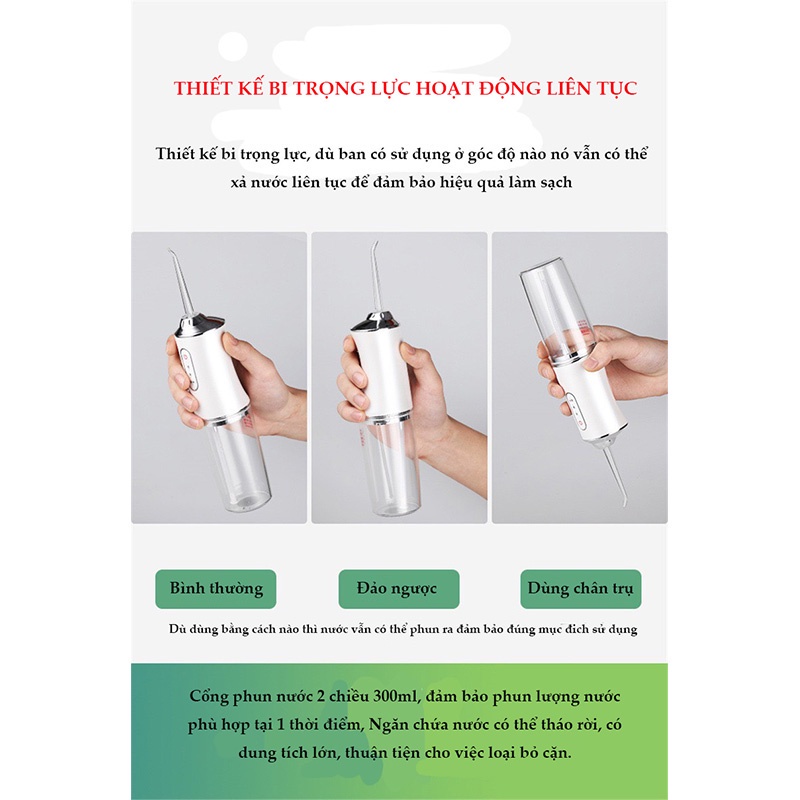 Máy Tăm Nước Cầm Tay TEKKIN TI-1025 Vệ Sinh Răng Miệng Sạc Pin Chống Thấm Nước