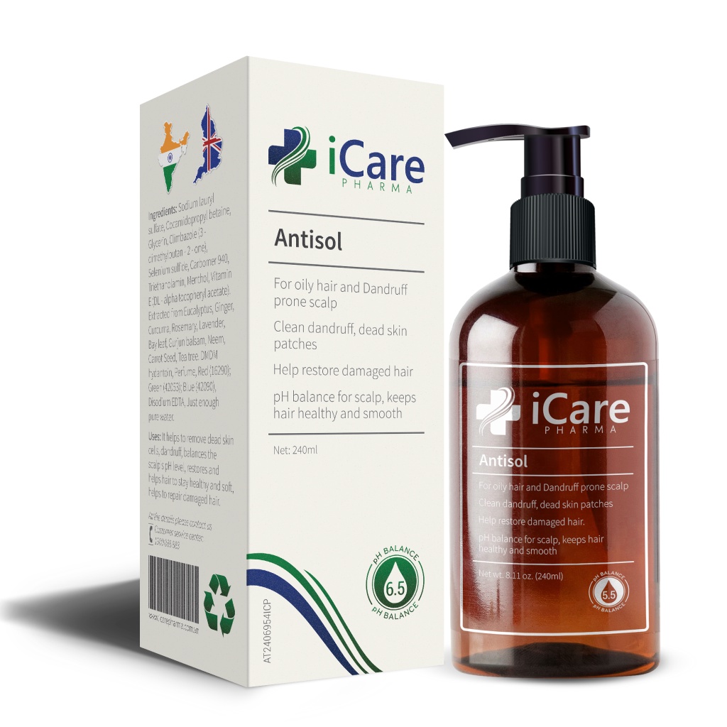 Dầu Gội iCare Antisol Sạch Gàu Chiết Xuất Dược Liệu Sạch Gàu, Giảm Ngứa, Chống Rụng, Không Gây Khô Tóc 240ml