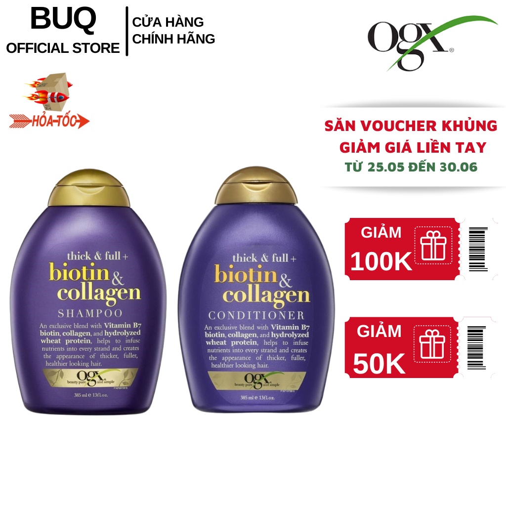 Bộ Dầu Gội Và Dầu Xả Dưỡng Dày Tóc OGX Thick & Full + Biotin Tím & Collagen (385ml/Chai)