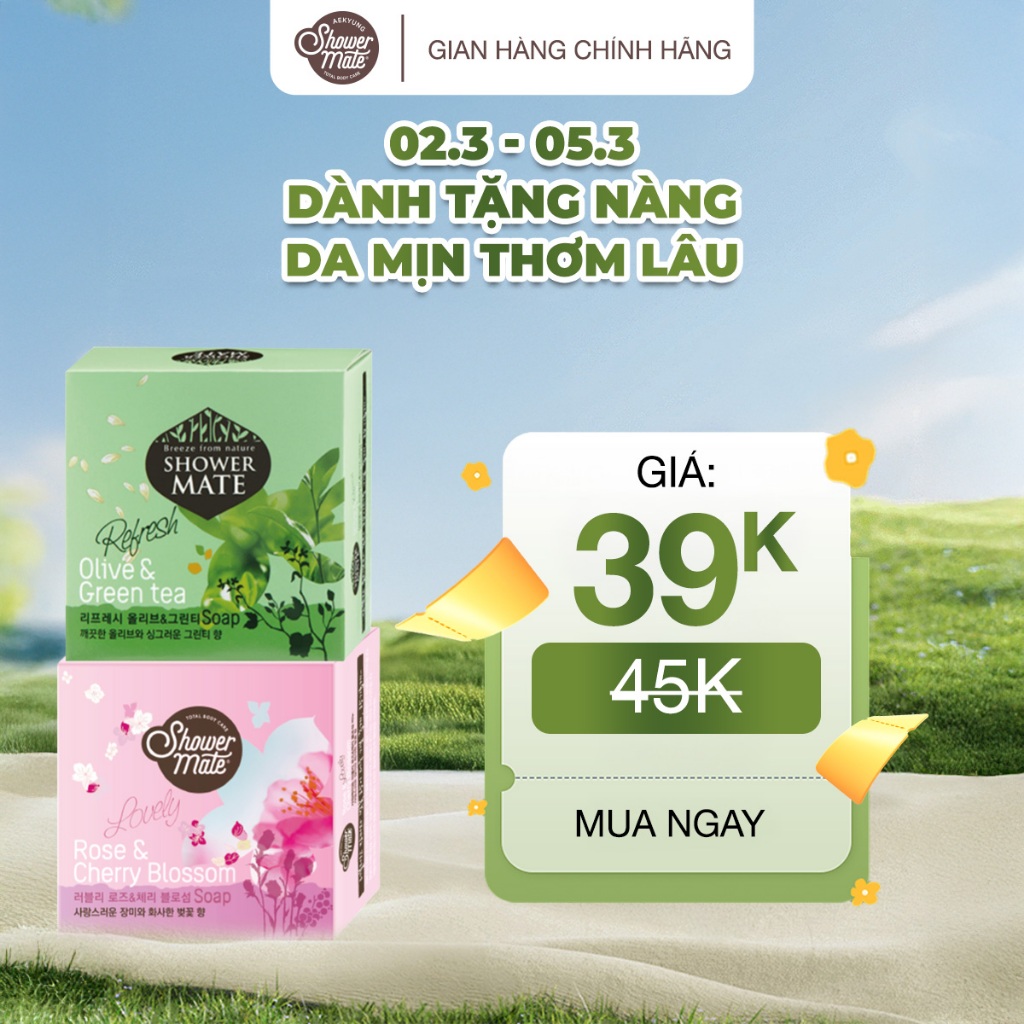 Xà bông tắm Hàn Quốc dưỡng ẩm, sáng da hương nước hoa Shower Mate 100g