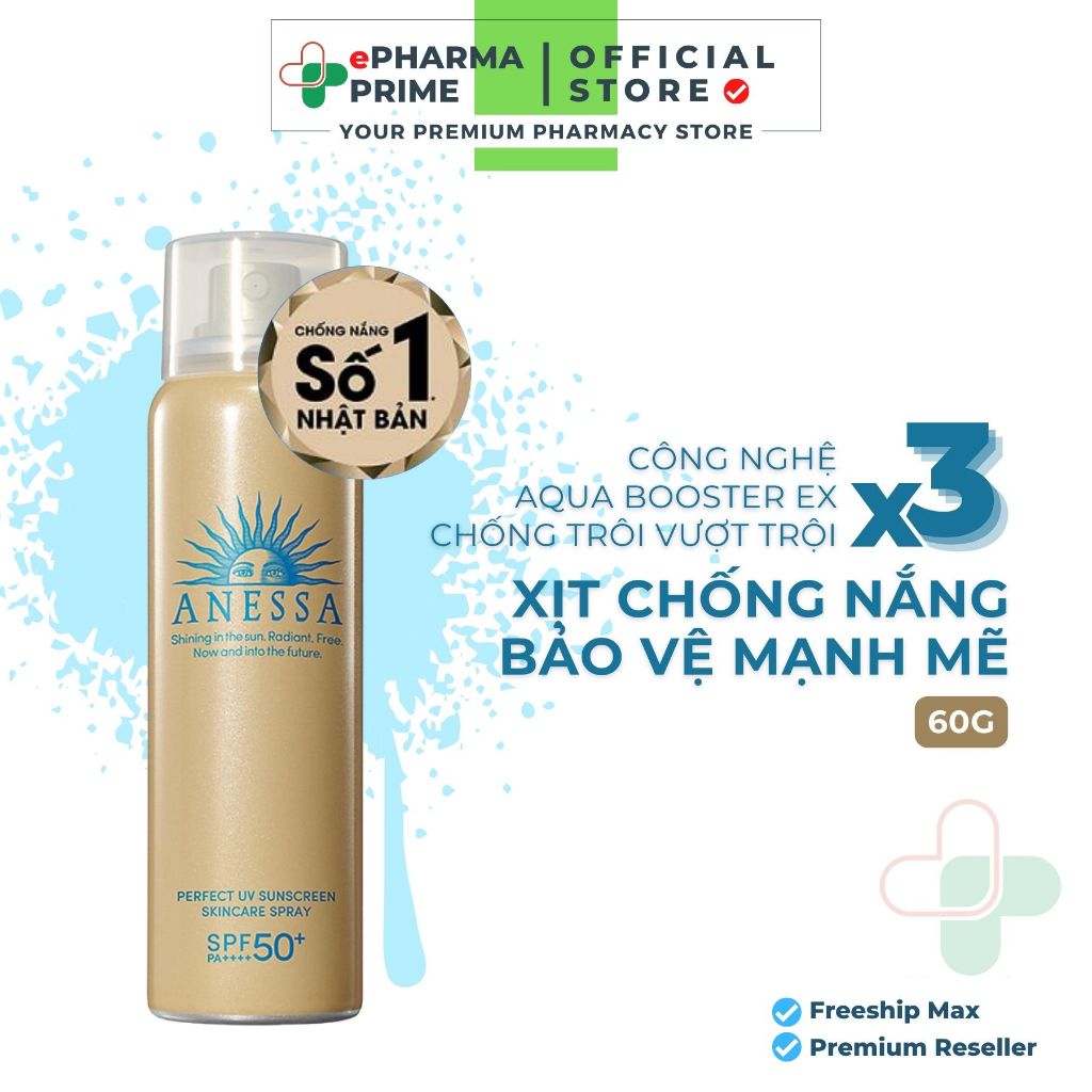 XỊT CHỐNG NẮNG Anessa Perfect UV Sunscreen SKINCARE SPRAY Chống Trôi Vượt Trội, Bảo Vệ Mạnh Mẽ 60g