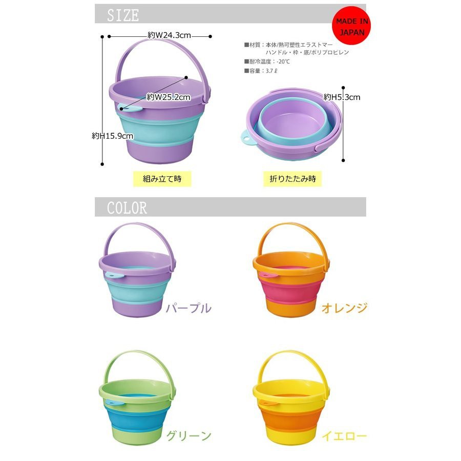 Xô mềm mini gấp gọn inomata cao cấp 3,7L màu vàng - Nội địa Nhật Bản