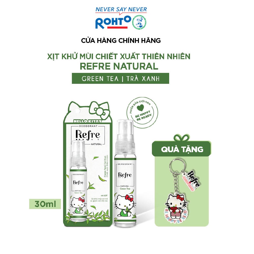 Xịt Khử Mùi Refre x Hello Kitty Natural Green Tea (Hương Trà Xanh) 30ml