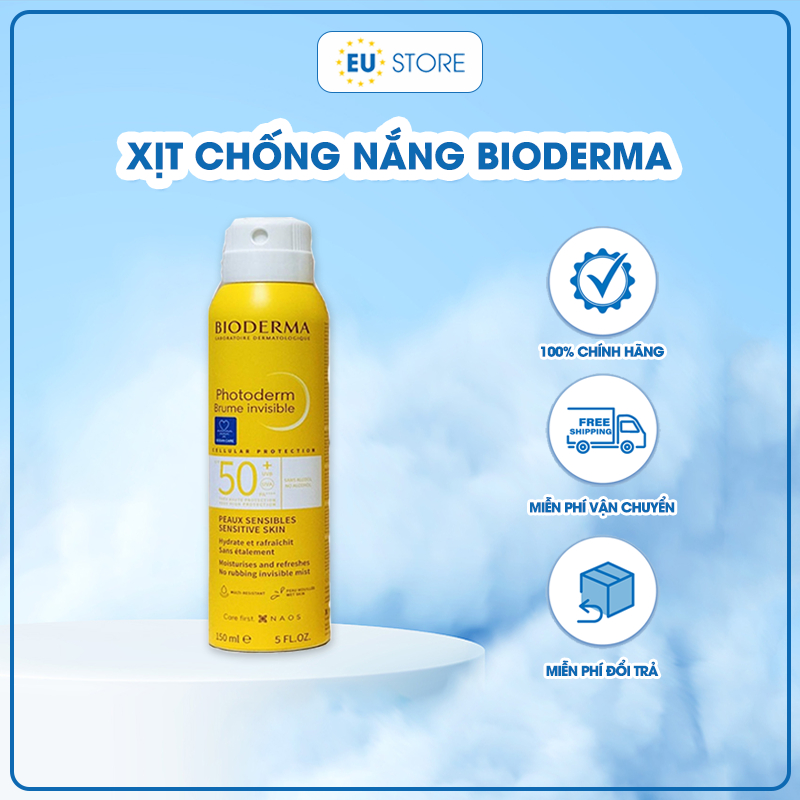 [Date 04/2026] Xịt chống nắng Bioderma SPF 50+ 150ml dùng cho cả mặt và body, dạng phun sương