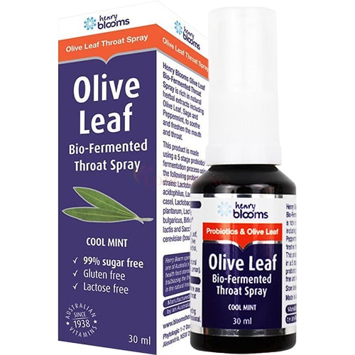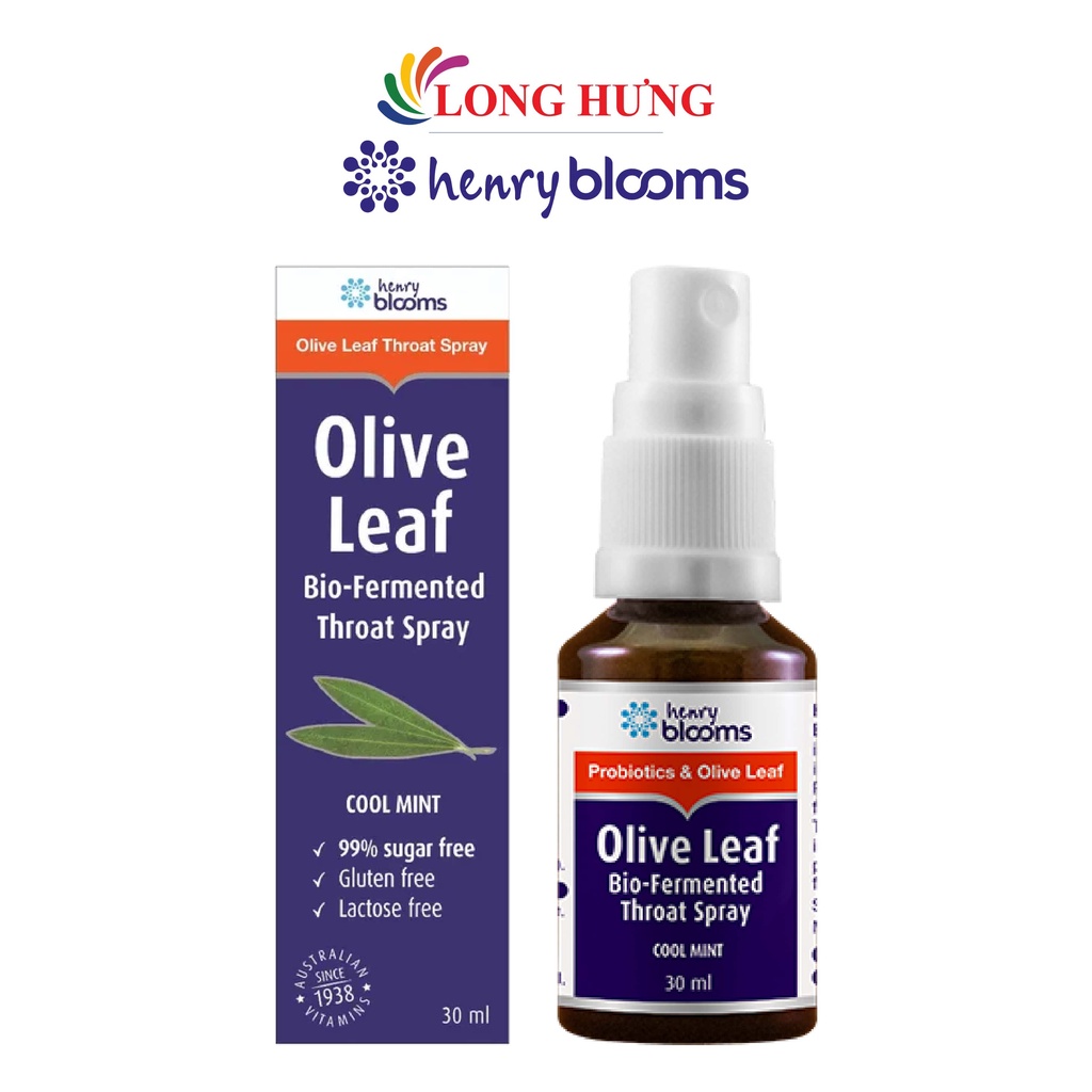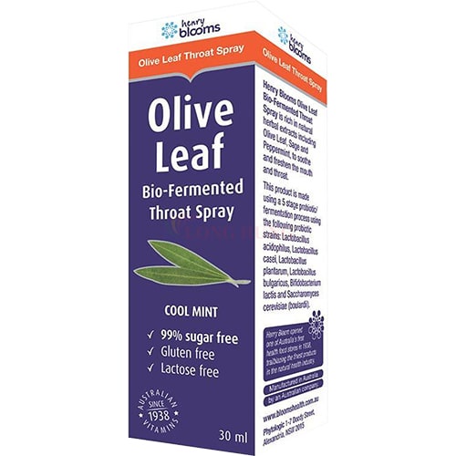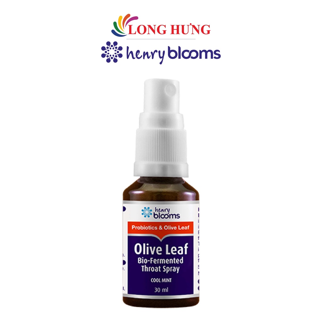 Xịt họng Henry Blooms Olive Leaf Bio-Fermented Throat Spray hỗ trợ giảm ho (30ml)