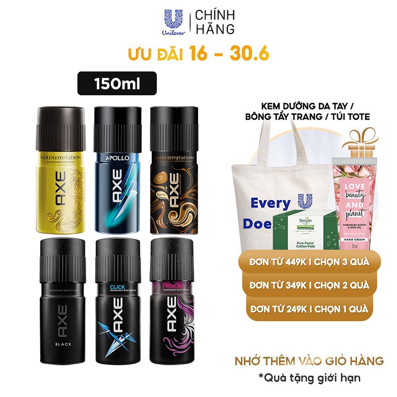 Xịt nước hoa toàn thân AXE dành cho nam với hương thơm tinh tế và tự nhiên 150ml