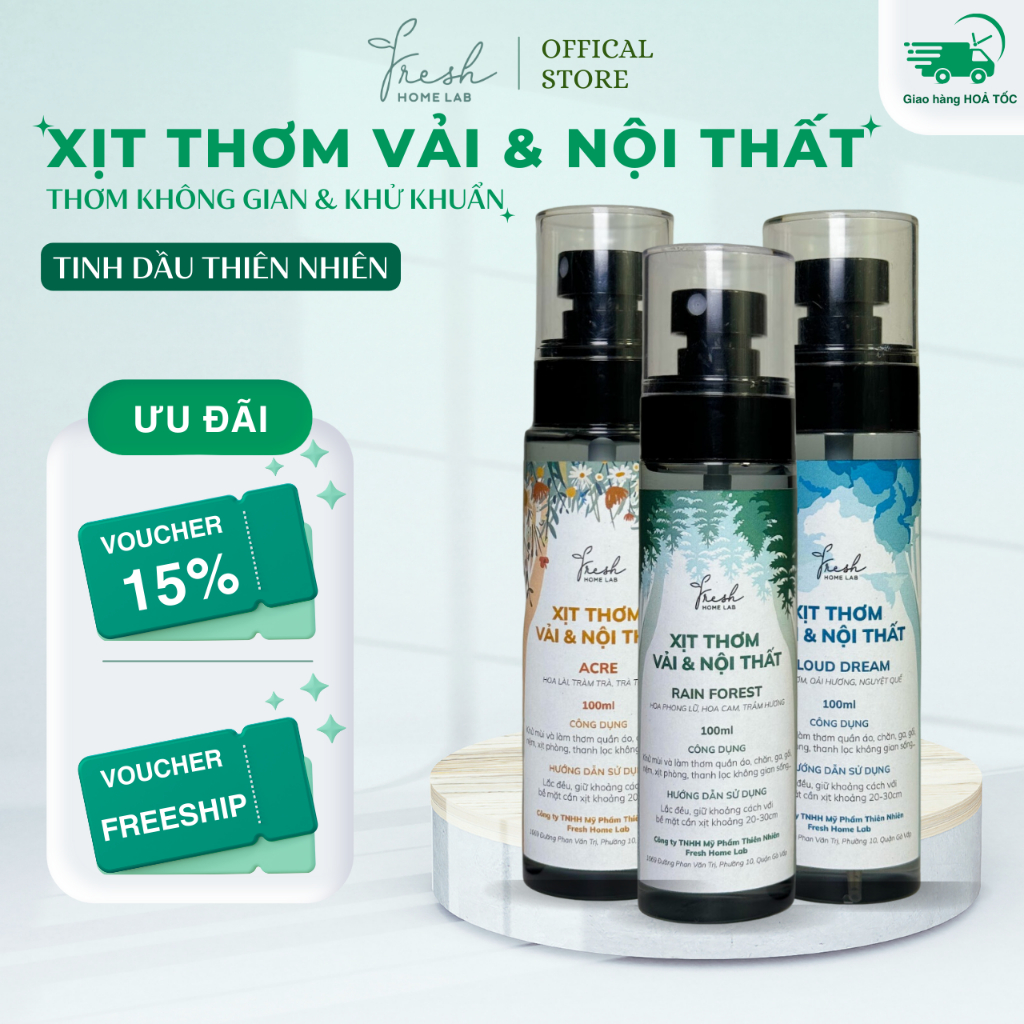 Xịt thơm quần áo, thơm không gian, xịt thơm khử khuẩn tinh dầu thiên nhiên thơm mát - Fresh Home Lab