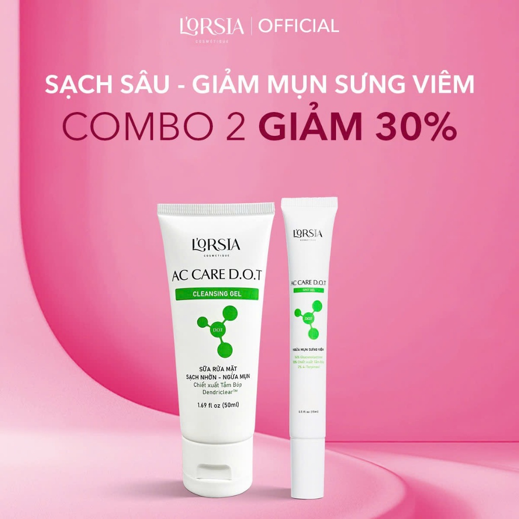 Combo sạch sâu - giảm mụn sưng viêm cho da: Sữa rửa mặt D.O.T 50ml, Gel chấm mụn D.O.T 15ml