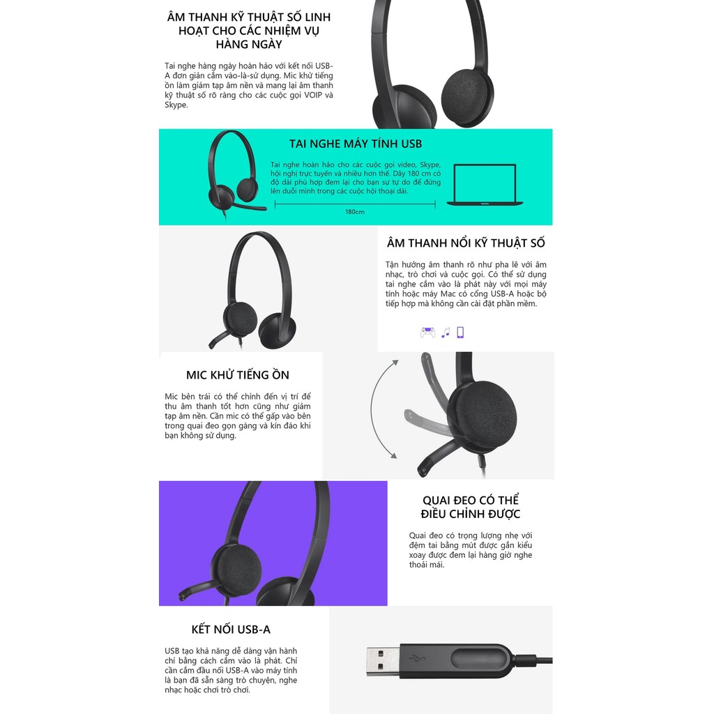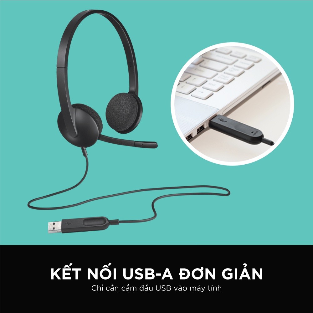 🎧 [Chính Hãng] Logitech H340 – Tai nghe USB-A, Mic Chống Ồn, Siêu Nhẹ, Chống Mỏi, Headband, Dây 1,8m
