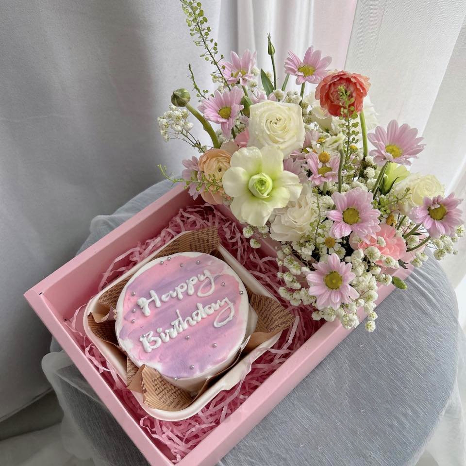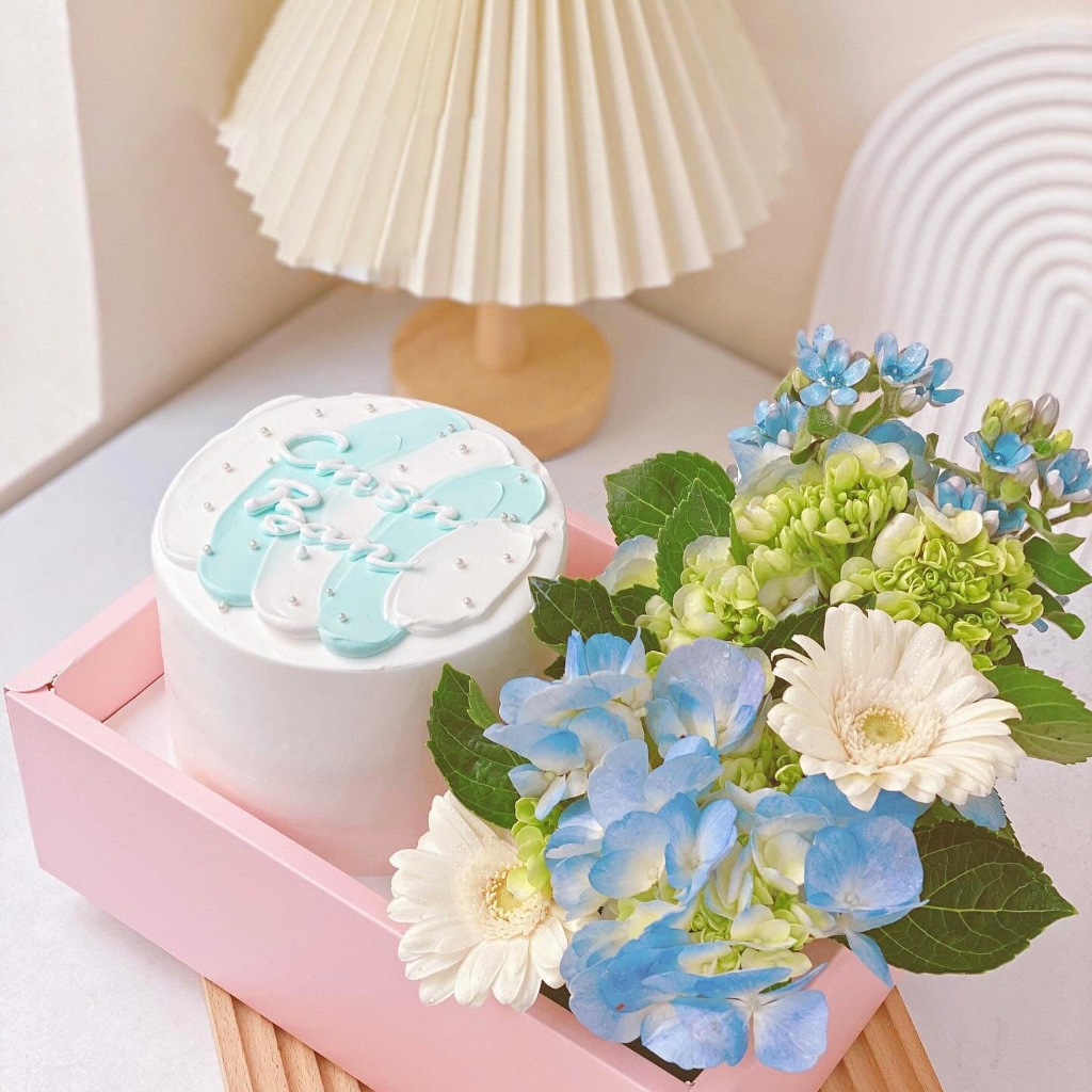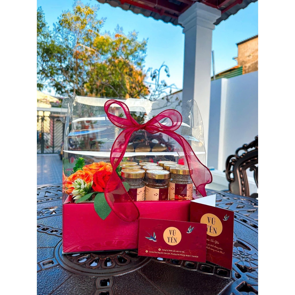 Hộp Mica trong suốt 2 ngăn có quai xách ECOBOX, đựng bánh và hoa, quà tặng handmade, kèm đế đỏ, hồng, trắng chữ love