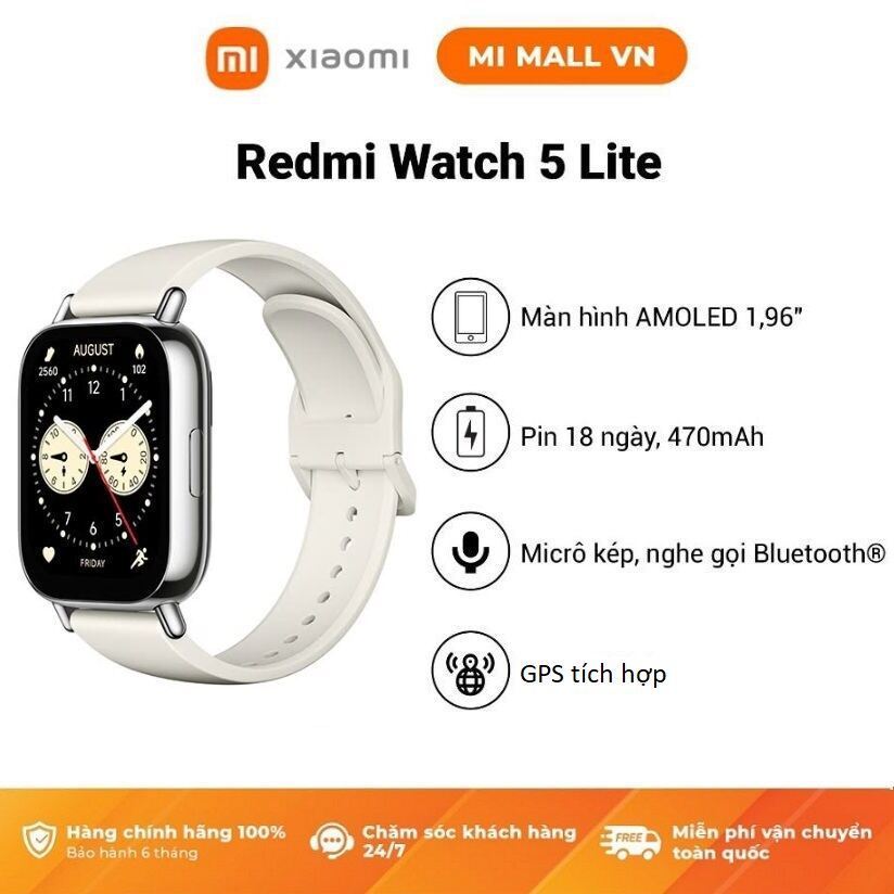 Đồng Hồ Thông Minh Xiaomi Redmi Watch 5 LITE / Màn hình AMOLED 1,96'' / GPS Độc Lập / Chống Nước 5ATM/ Bảo Hành 12 Tháng
