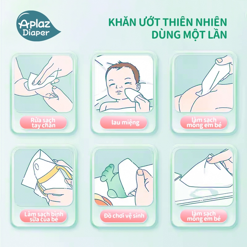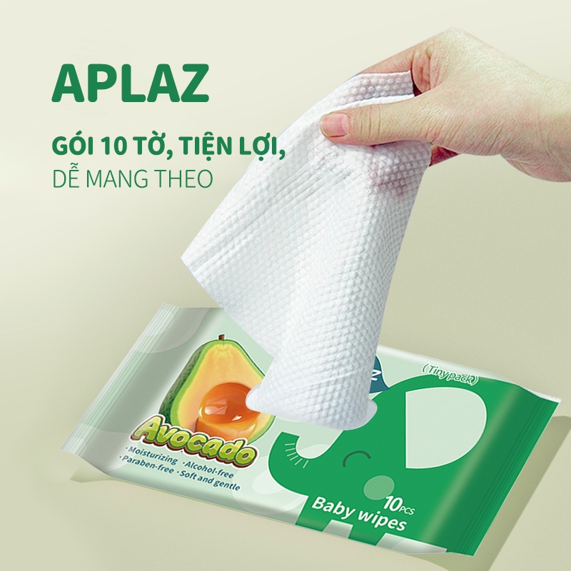 Khăn Ướt Em Bé Aplaz Không Cồn – Không Mùi, Dịu Nhẹ Cho Da, Gói 10 Miếng