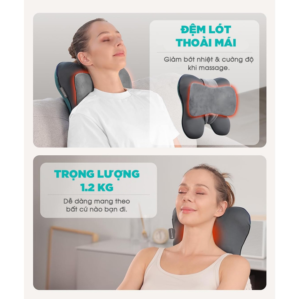 Gối Massage Đa Năng Nhiệt Hồng Ngoại Cao Cấp KINGTECH KP-500 - Chuyên Sâu Cổ Vai Gáy, Thắt Lưng - Chính Hãng