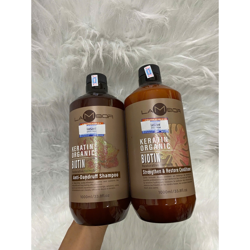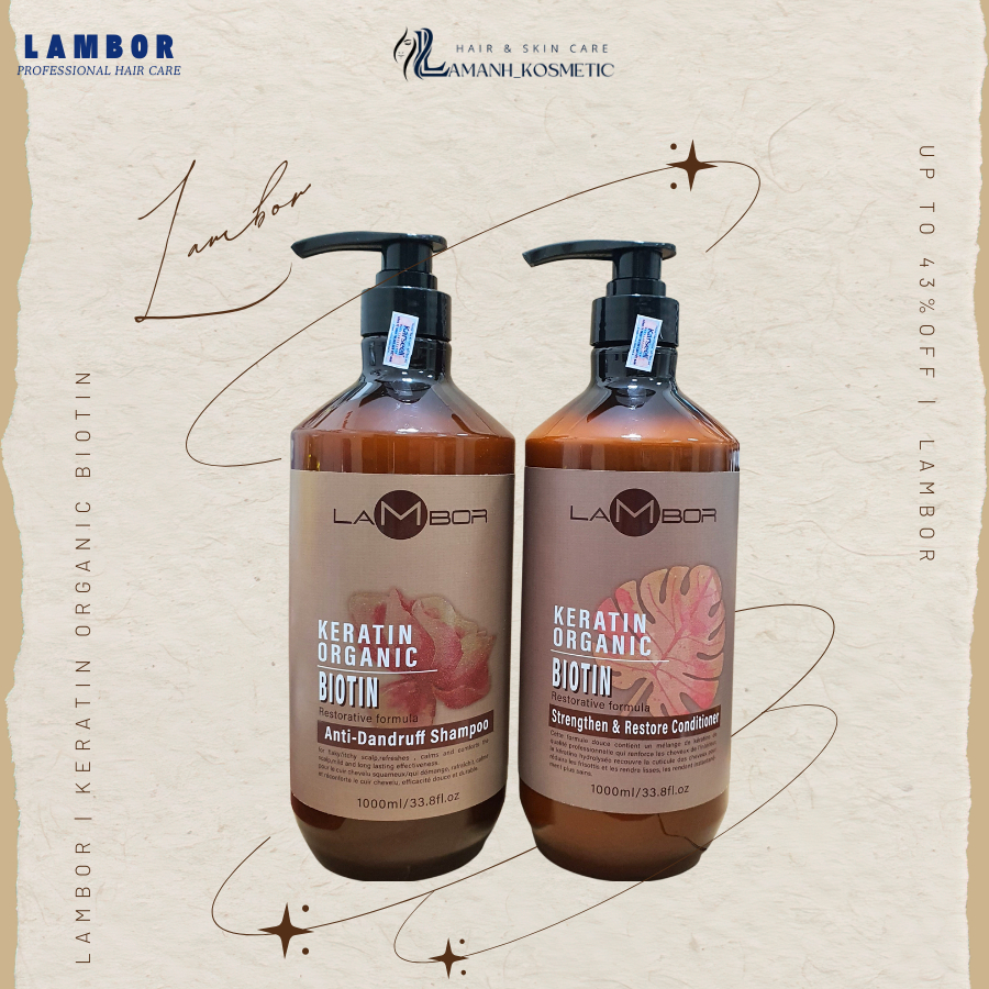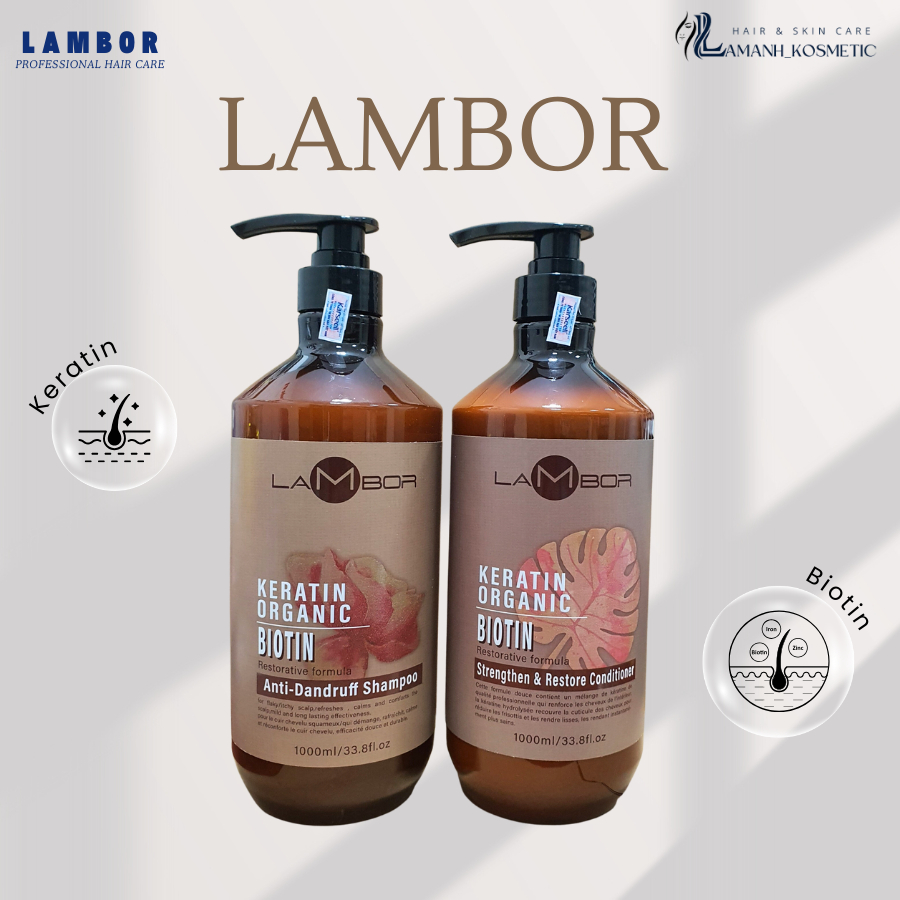 Dầu gội xả LAMBOR keratin organic sạch gàu, ngăn dầu chống gãy rụng phục hồi tóc siêu mềm mượt