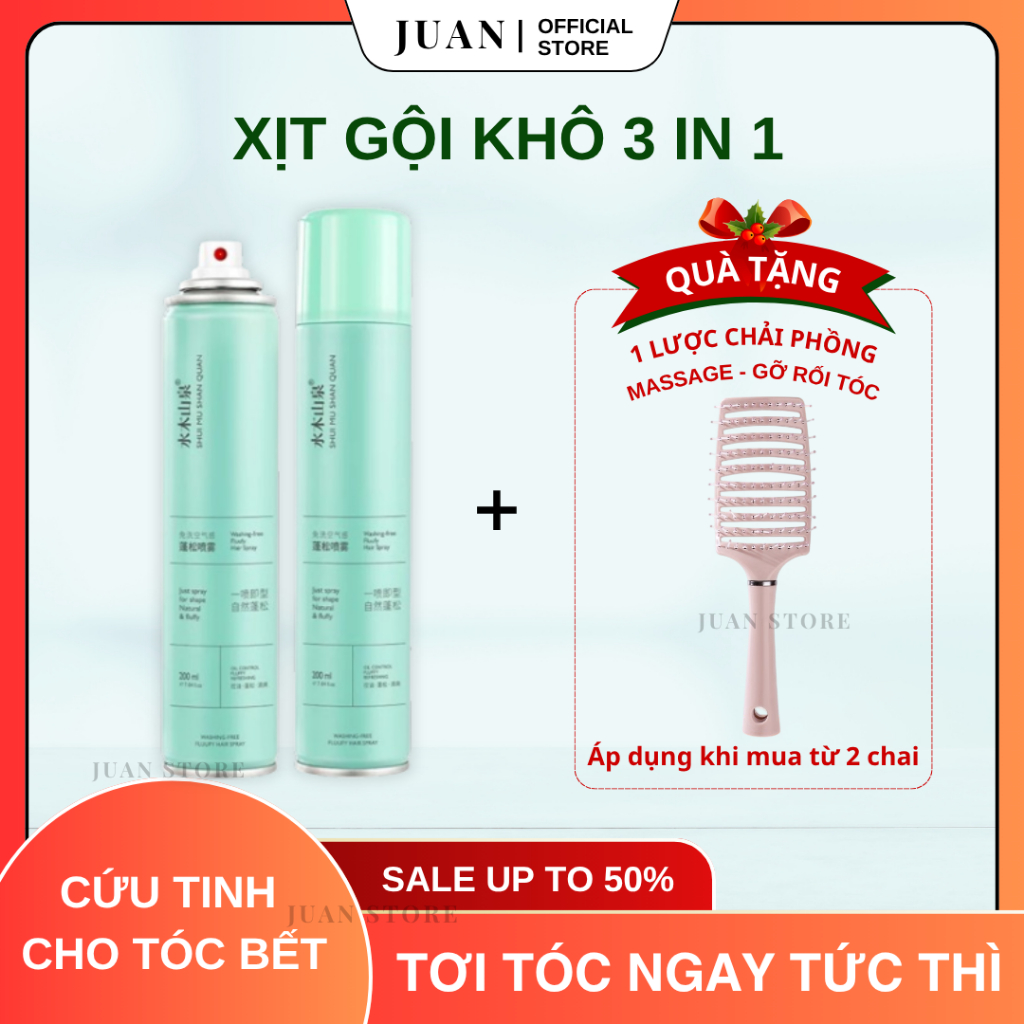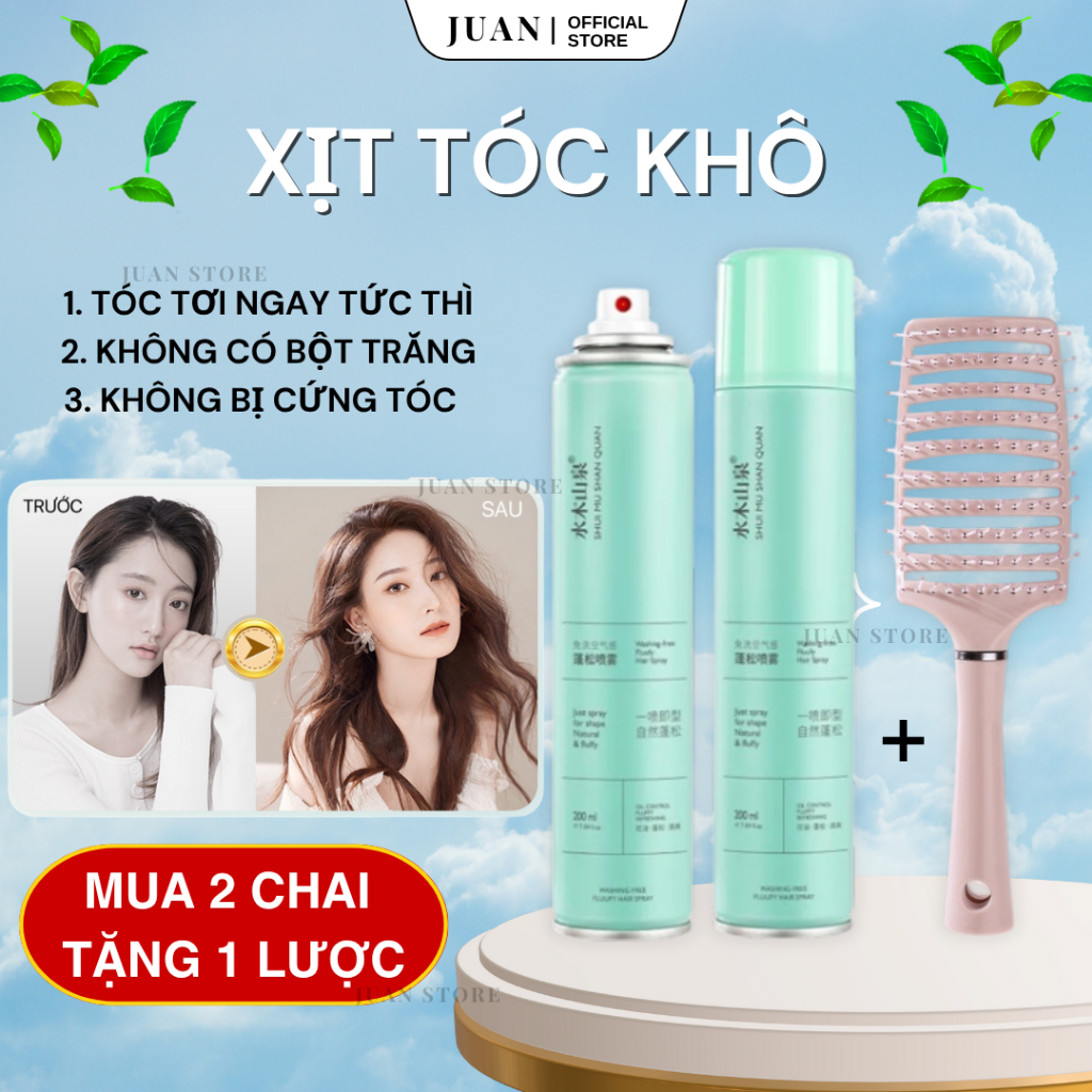 [TẶNG LƯỢC TỪ 2 CHAI] Bình xịt gội khô 3 in 1, không có bột trắng | Chính hãng | - JDGK01