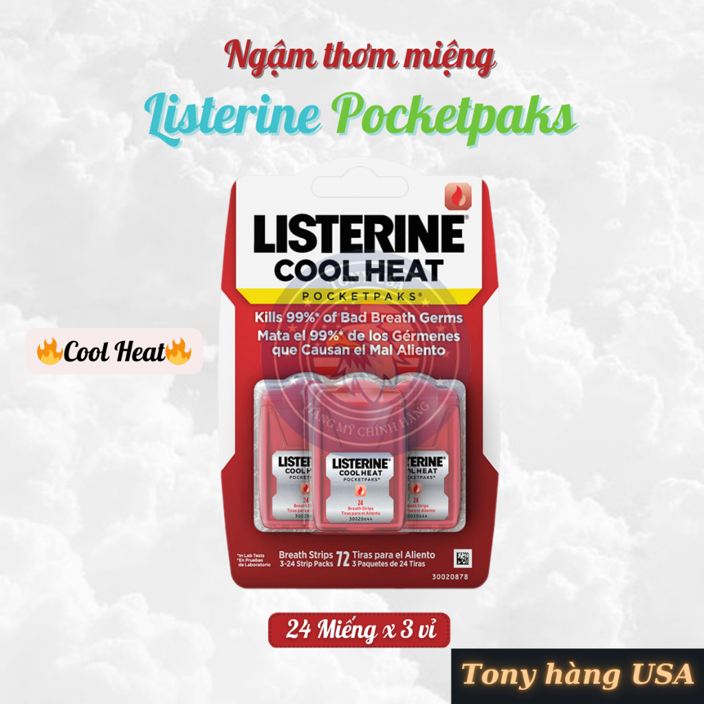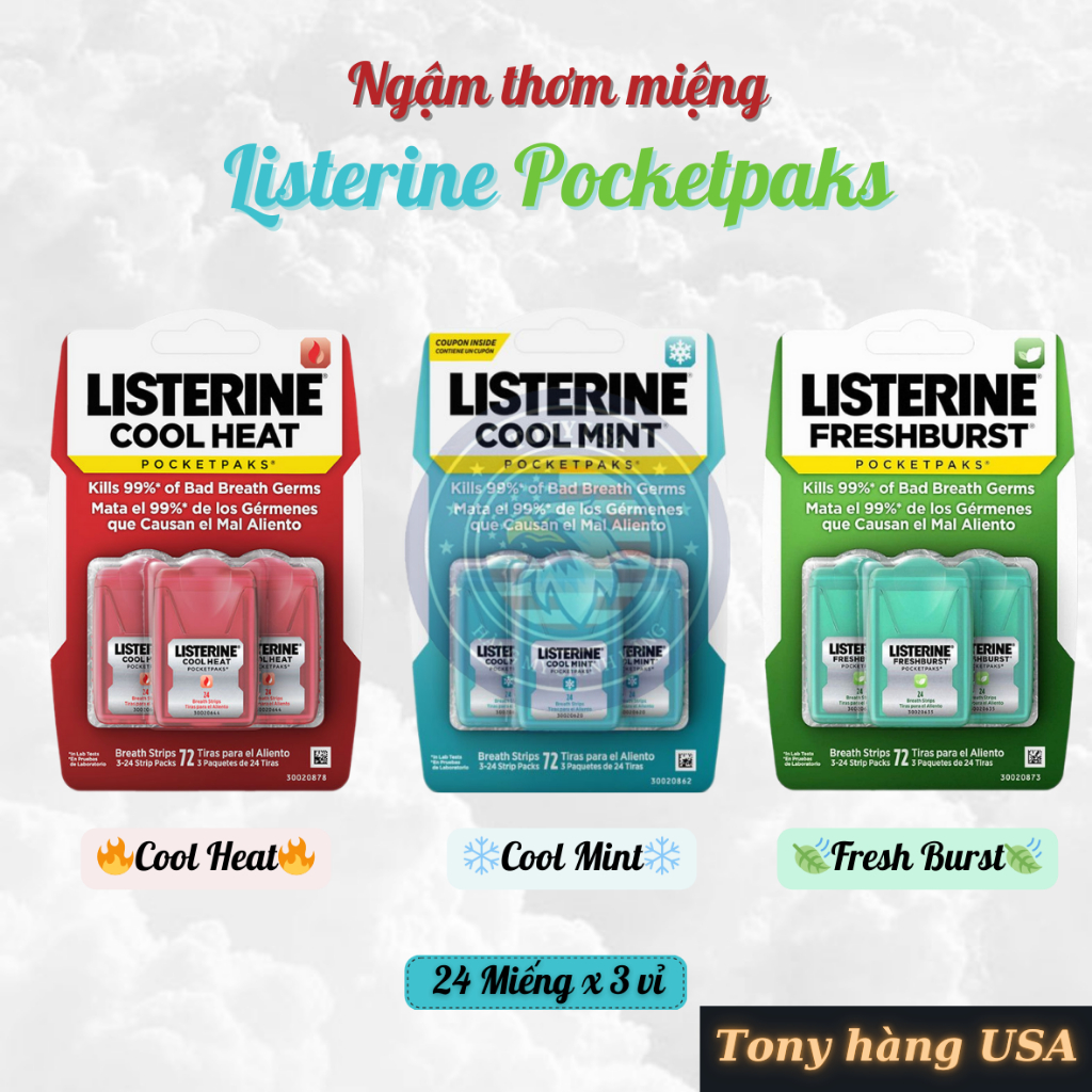Miếng Ngậm Thơm Miệng Listerine Pocketpaks Vỉ 3 hộp x 24 miếng Hàng Chính Hãng Mỹ - Tony Hàng Ngoại
