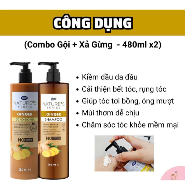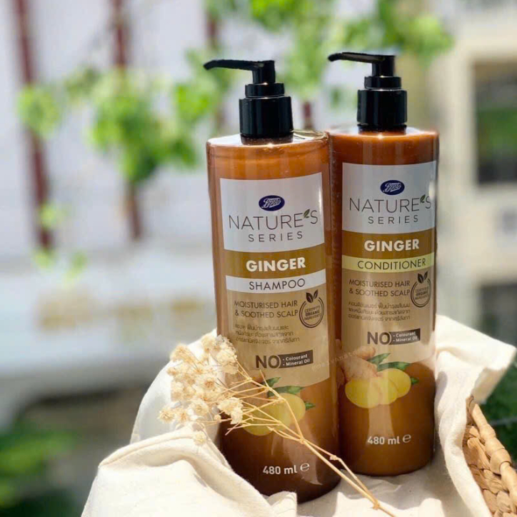 Cặp dầu gội xả gừng hữu cơ BOOTS Thái Lan - giảm tóc bết, gãy rụng