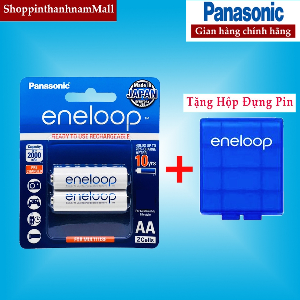 Pin Sạc Eneloop Panasonic AA 2000mAh Vỉ 2 Viên Chính Hãng - Tặng Kèm Hộp Đựng Pin Eneloop Xanh