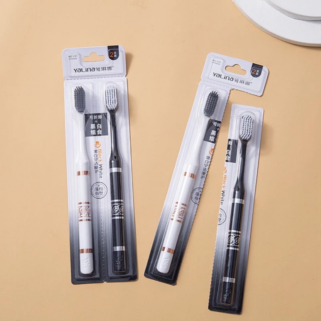 PVN64326 Set 2 Bàn Chải Màu Đen Và Trắng Cho Couple Lông Siêu Mềm Đặc Hiệu Cho Người Bị Việm Nướu tongkhosi2