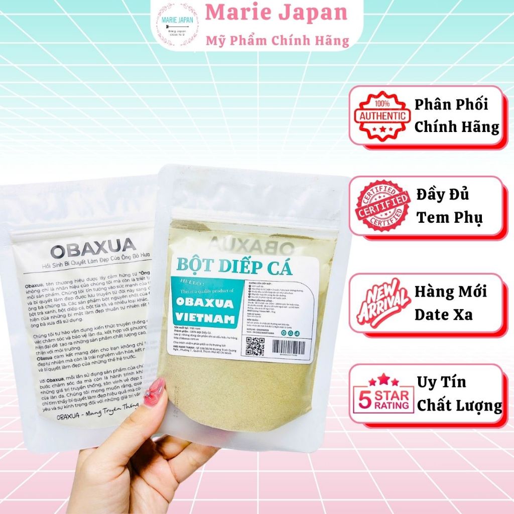 Bột Diếp Cá Obaxua Sấy Lạnh Nguyên Chất Giảm Mụn Se Khít Lỗ Chân Lông Gói 75gr