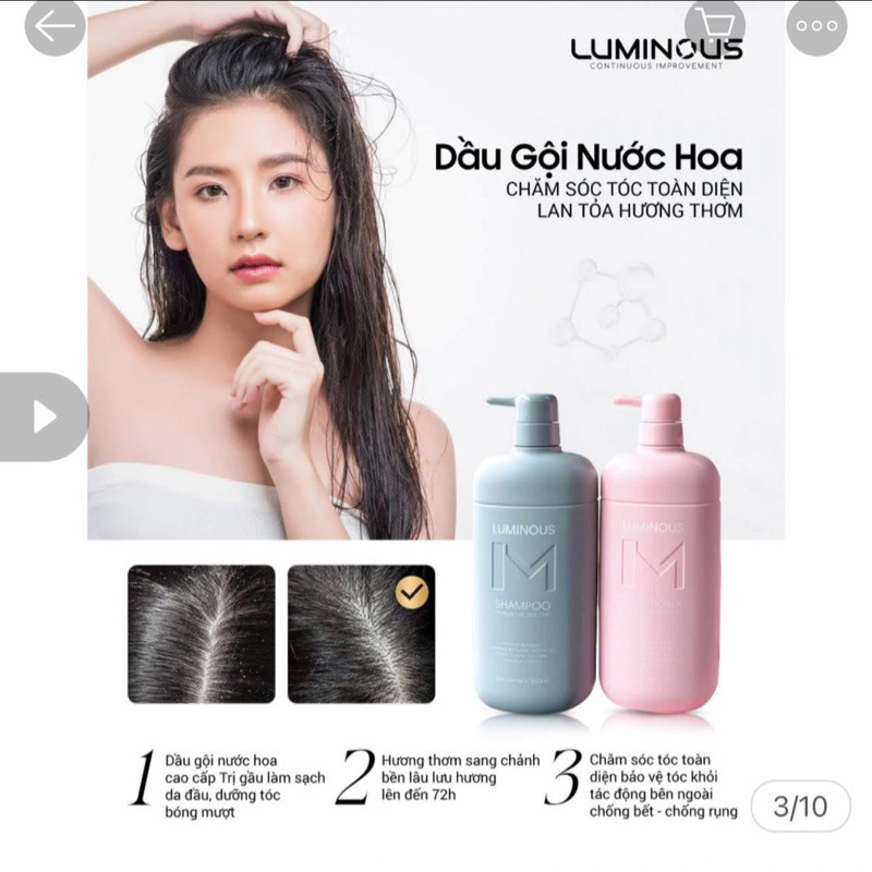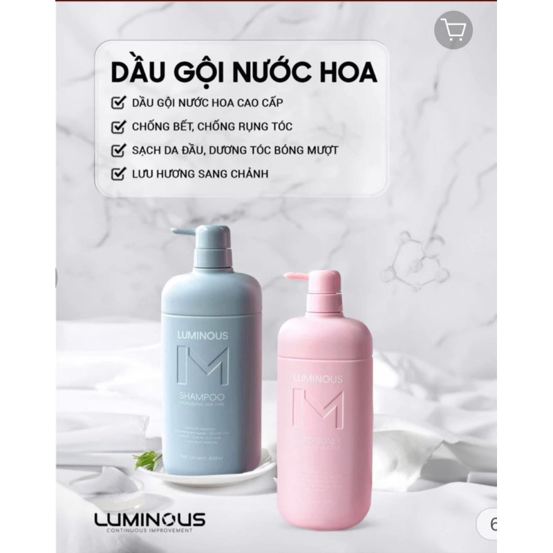 Dầu Gội Xả Dưỡng Tóc Bóng Mượt LUMINOUS Chống Bết Gãy Rụng Tóc, Combo Gội Xả Hương Nước Hoa 500mlx2 NL