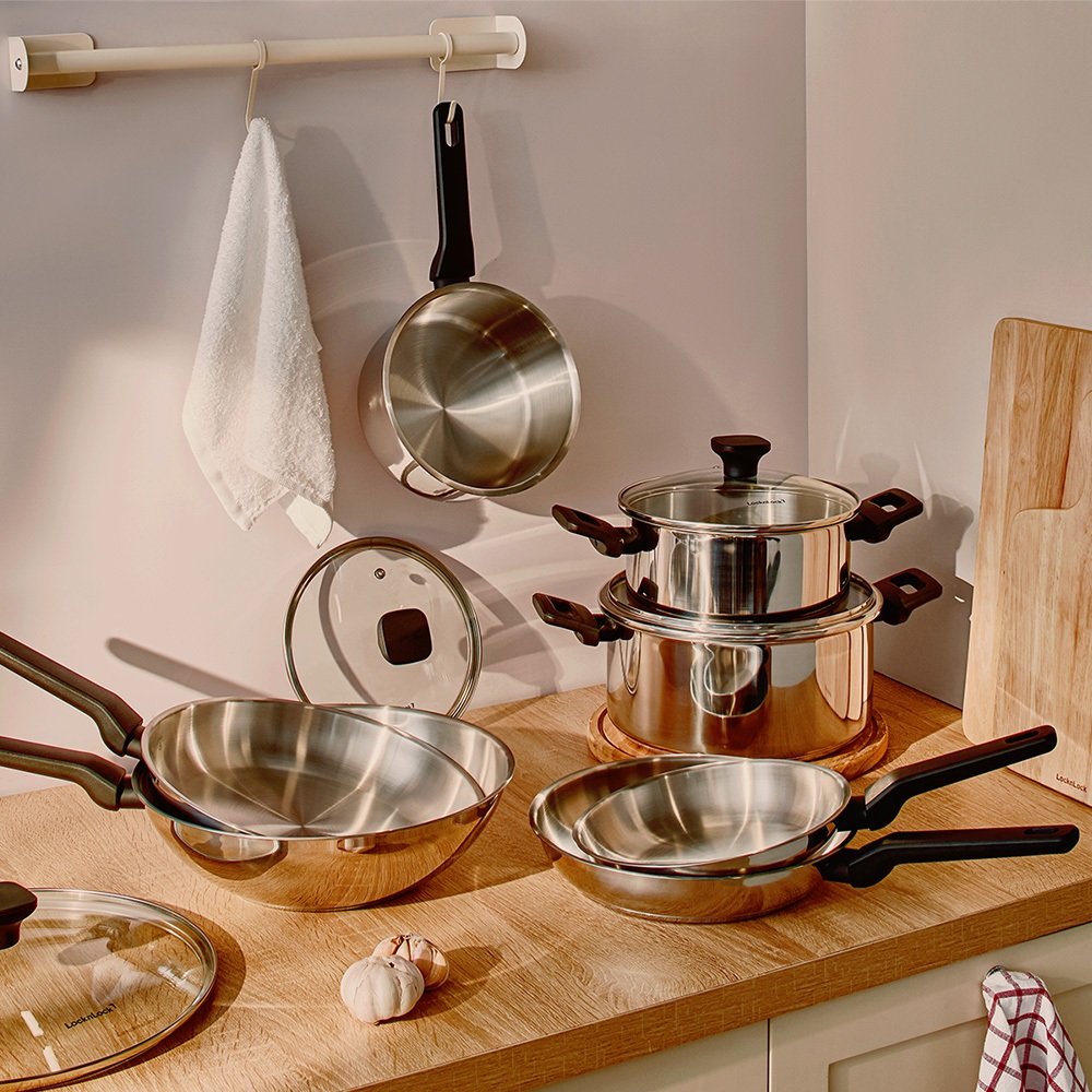 Nồi, Chảo Inox LocknLock Daily STS PPW thân bằng thép không gỉ 304, kèm nắp kính trong suốt, tay cầm chịu nhiệt