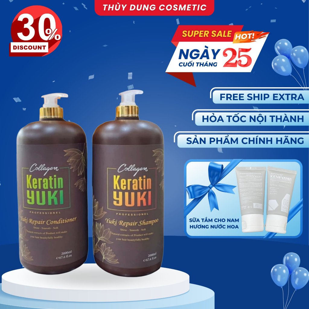 Dầu Gội Đầu Nữ Keratin Yuki Dầu Gội Gàu Collagen Keratin YUKI 2000ML | Giảm Rụng Tóc, Kích Mọc Tóc, Phục Hồi Tóc Hư Tổn