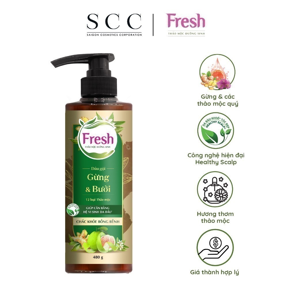 Dầu gội Fresh Thảo Mộc Dưỡng Sinh 480g 380g- Gừng & Bồ Kết + Gừng & Bưởi