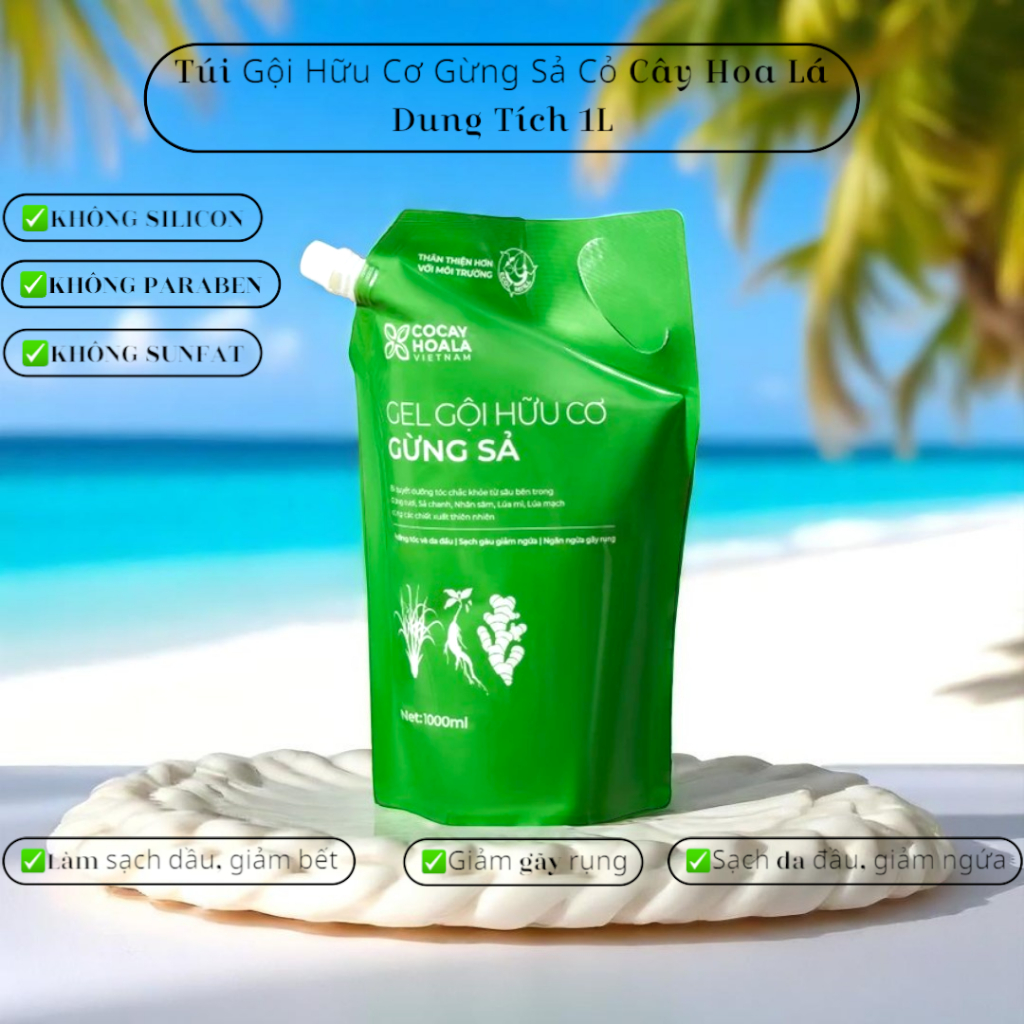 DẦU GỘI + XẢ HỮU CƠ GỪNG SẢ CỎ CÂY HOA LÁ - GIẢM BẾT DẦU - NGĂN GẦU GIẢM NGỨA 500ML