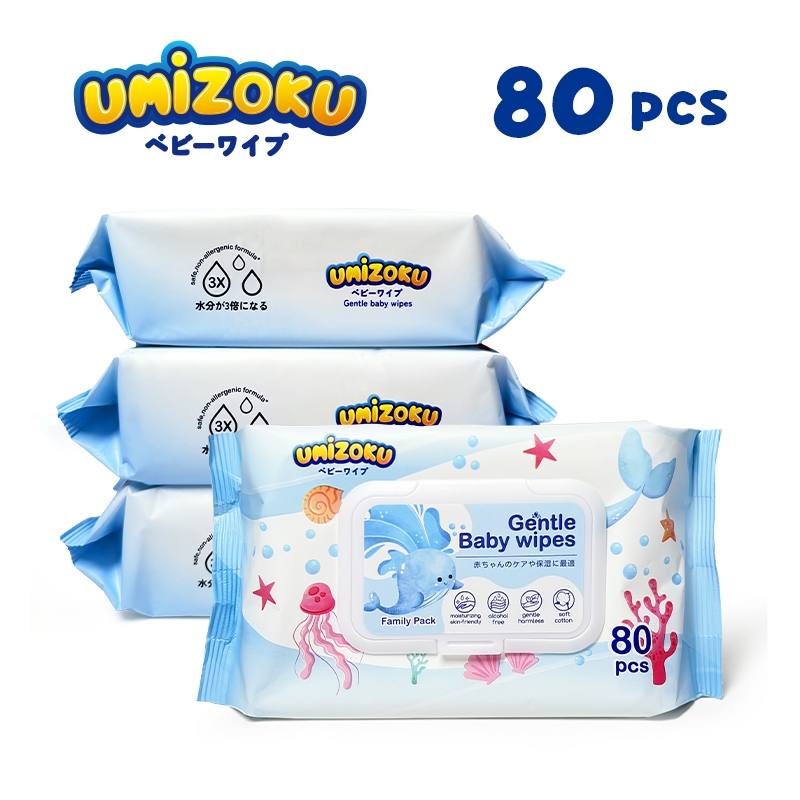 UMIZOKU Khăn lau trẻ em 80/20 tờ/gói không mùi không cồn chất lượng cao