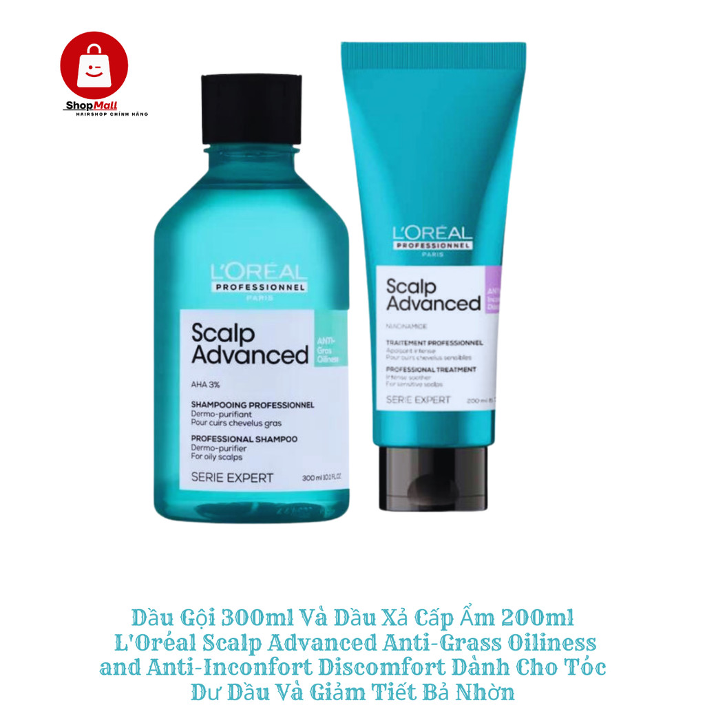 Dầu Gội, Xả Cấp Ẩm L'Oréal Scalp Advanced Anti-Grass Oiliness Cho Tóc Dư Dầu, Giảm Tiết Bả Nhờn