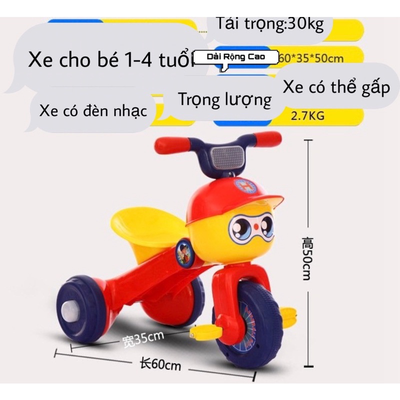 Xe Đạp 3 Bánh cho bé Con Kiến -Có Nhạc-Có Đèn Phát Sáng-Có Thể Gập Gọn Gàng Tiện Vận Chuyển-Bánh Phát Sáng.