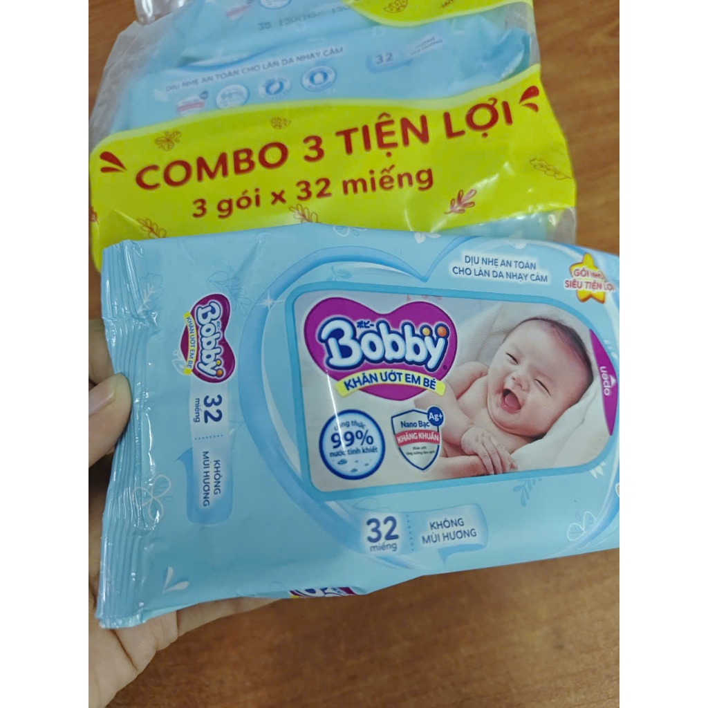 Combo Khăn ướt Bobby không mùi 32 miếng, 80 miếng /gói Dịu nhẹ An toàn Lành tính Cho da Em bé