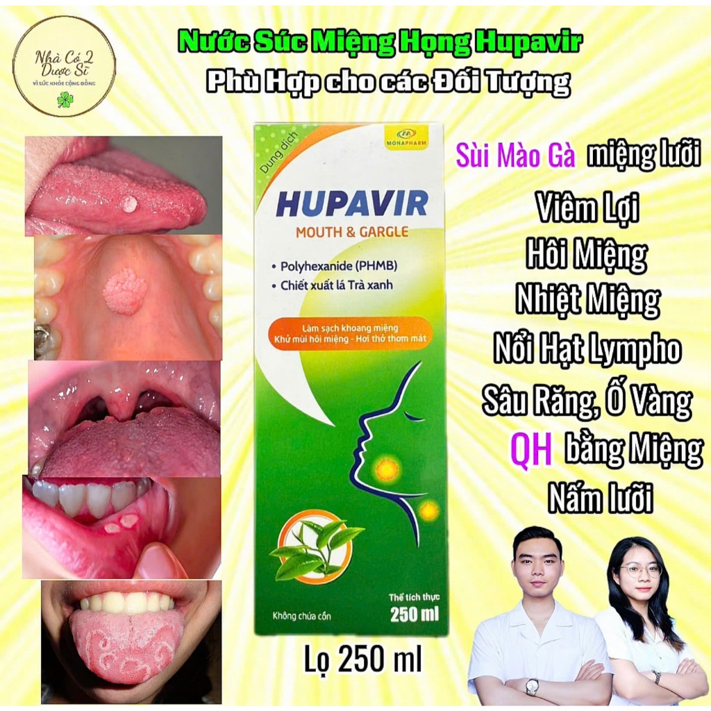 [Che Tên] Nước Súc Miệng Súc Họng Hupavir 250ml Hỗ Trợ Kháng Khuẩn, Kháng Virus, Hạt Lympho, Nấm Lưỡi, Nhiệt Miệng