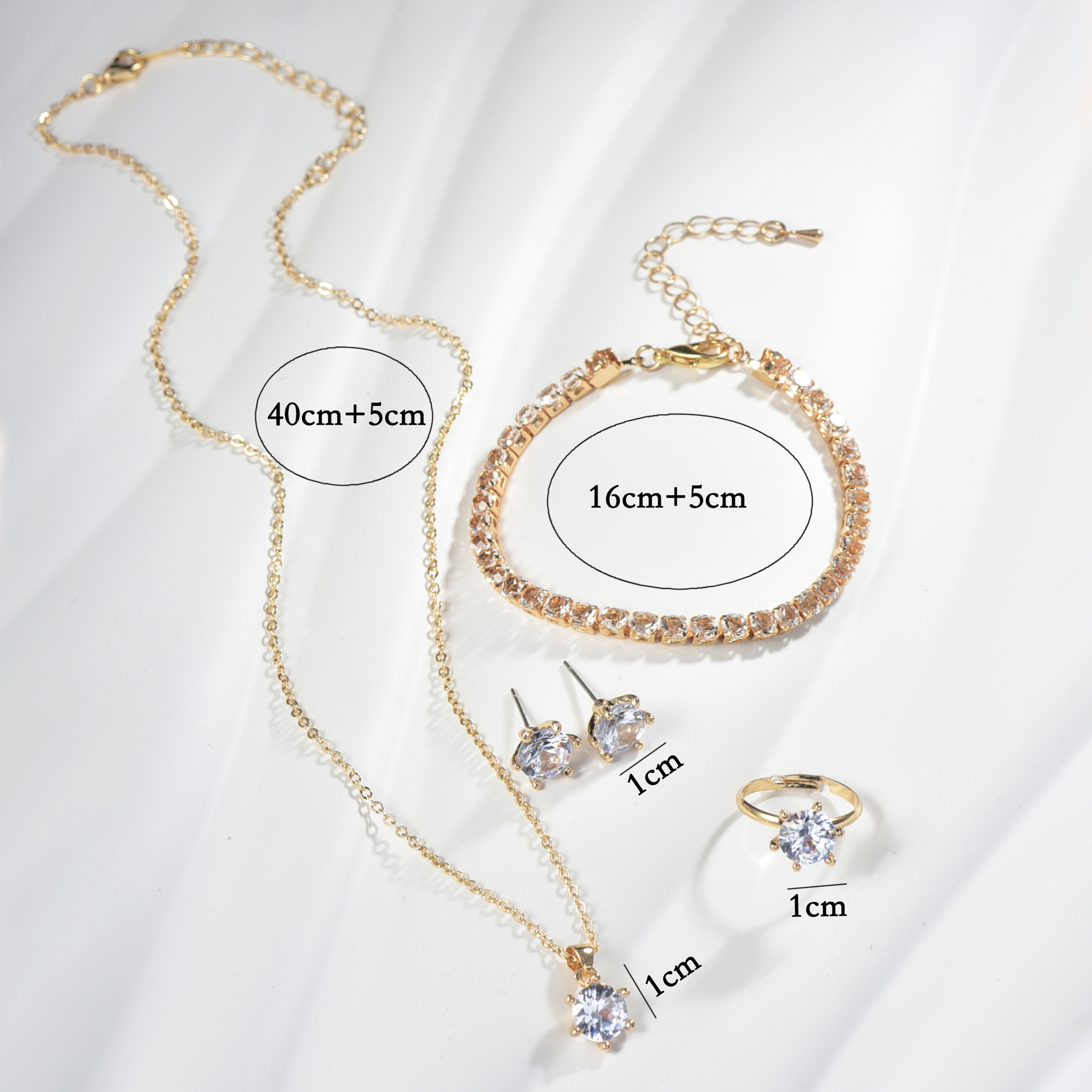 Bộ trang sức ngọc trai thanh lịch mới cho phụ nữ: Dây chuyền, bông tai, vòng tay, nhẫn 4 món.