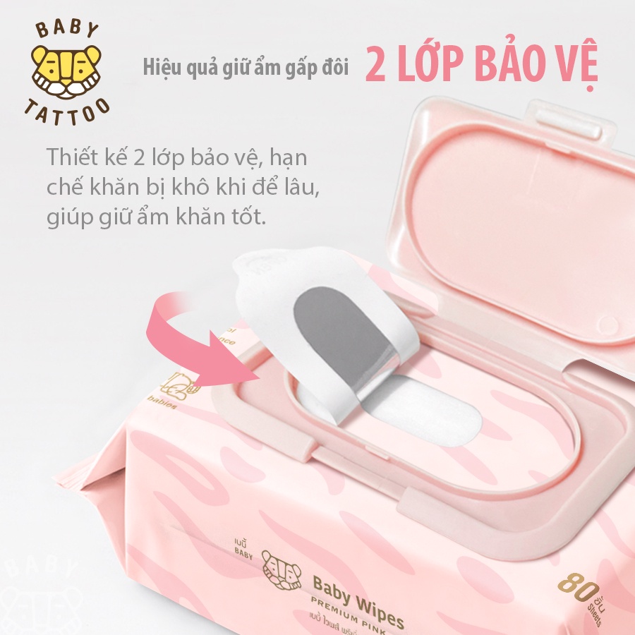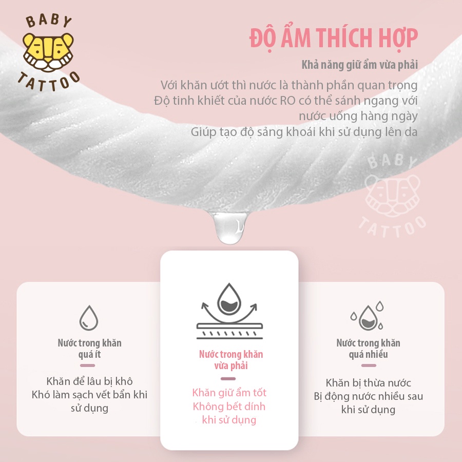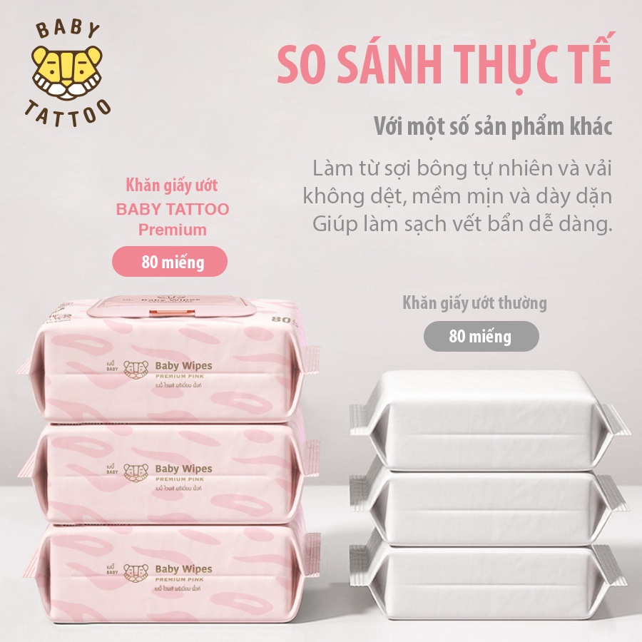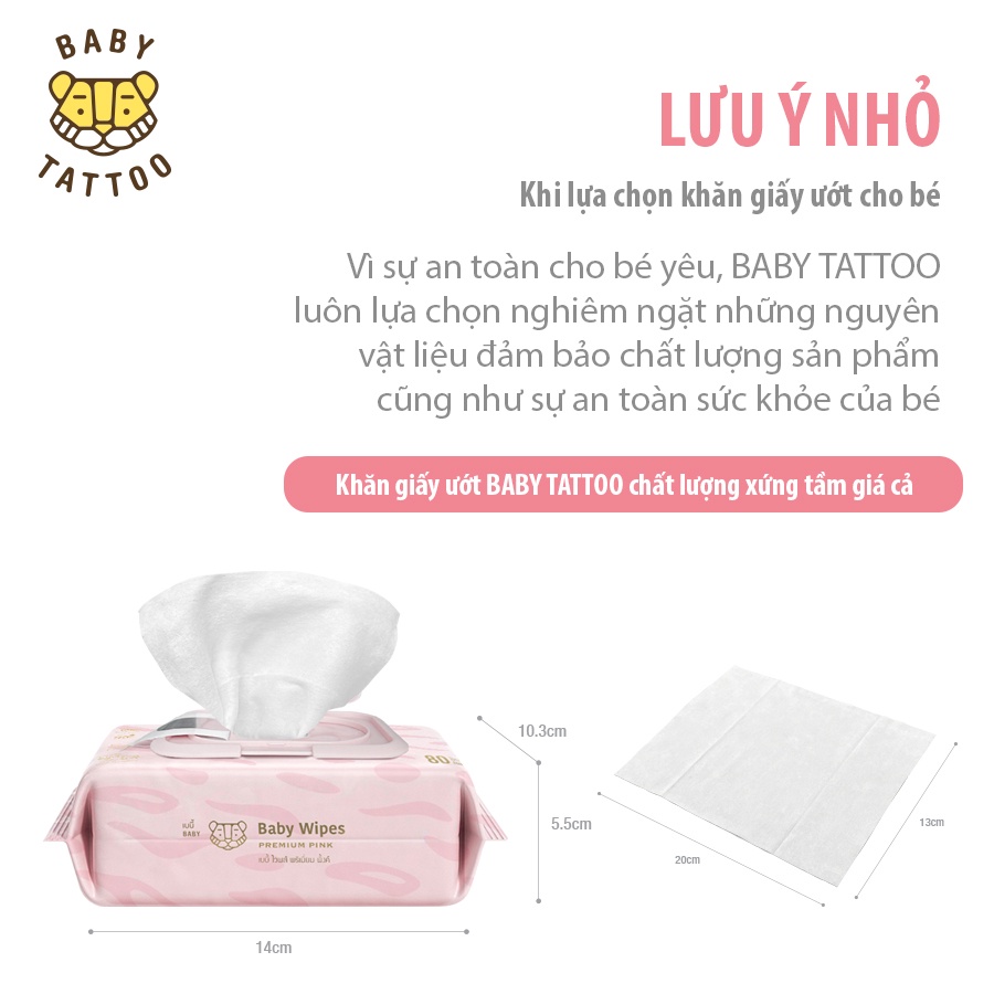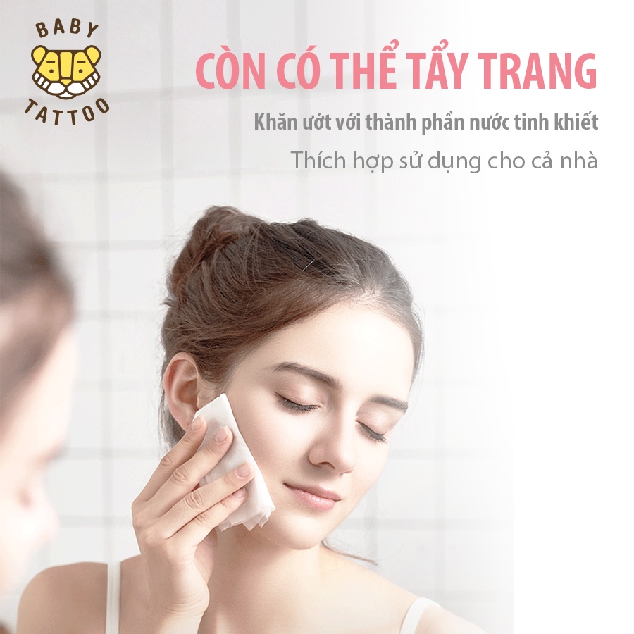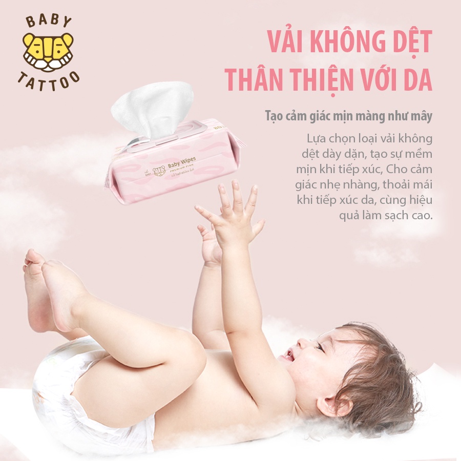 BABY TATTOO Khăn Giấy Ướt Siêu Cao Cấp Cho Bé Chất Vải CASHMERE, Làm Từ 100% Sợi Bông Tự Nhiên, Gói 90 Miếng