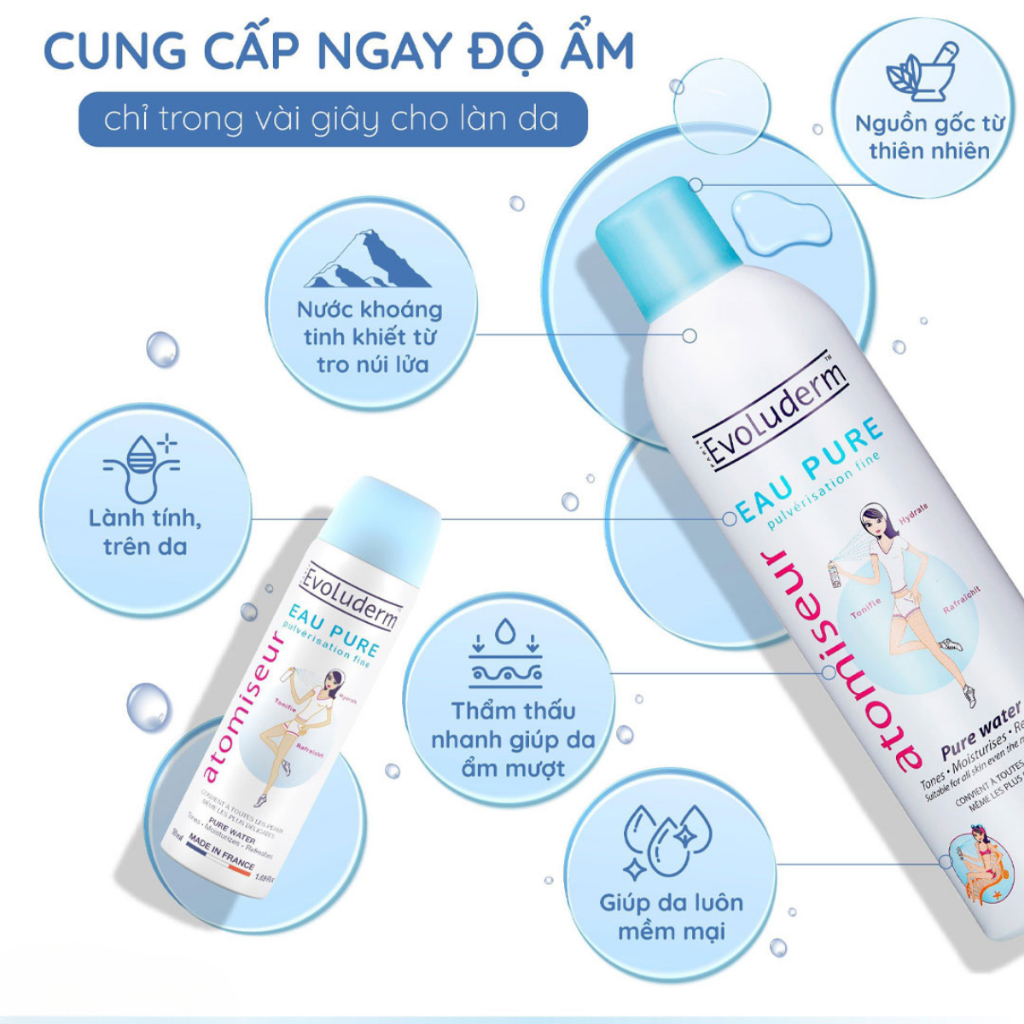 Combo Xịt Khoáng Evoluderm Cấp Nước Cho Da 150ml & 400ml Pure Water Atomizer Hasaki Sản Phẩm Chính Hãng