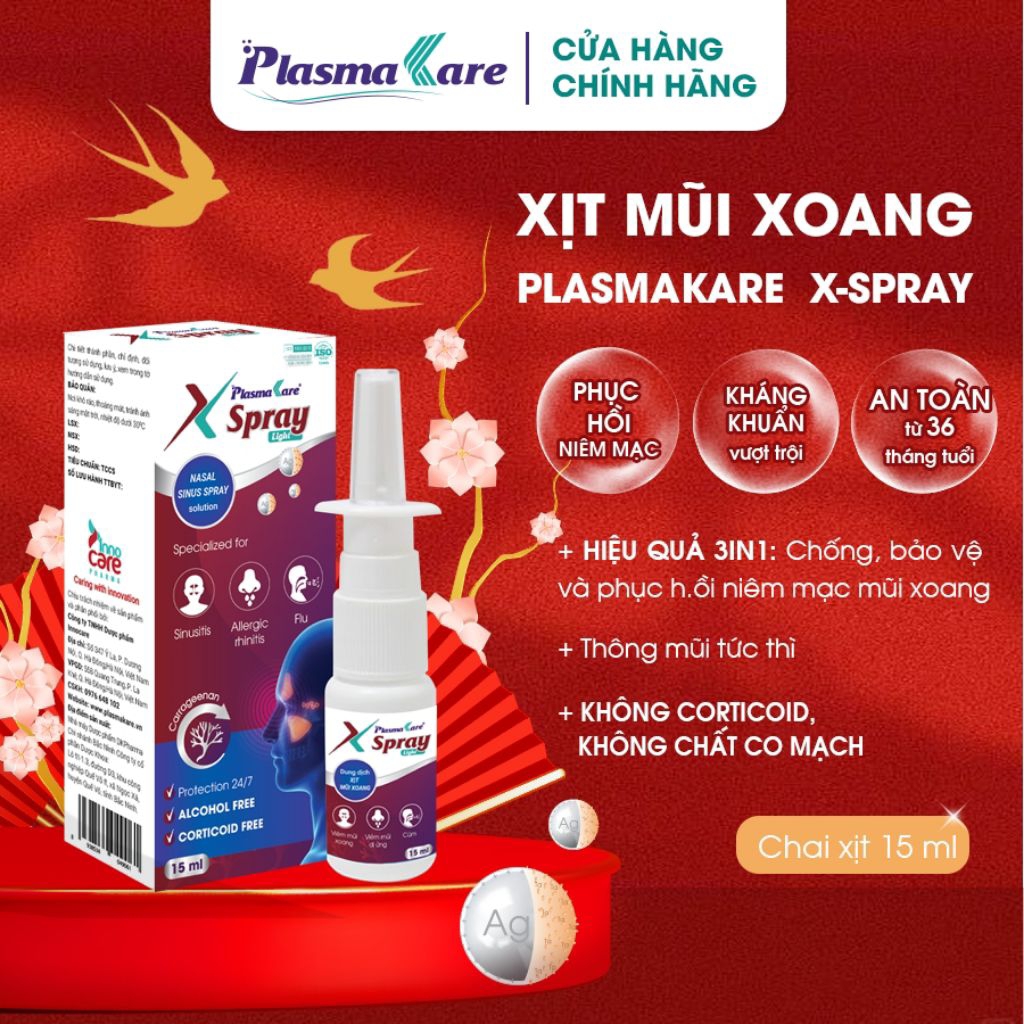 Xịt Mũi Xoang Nano Bạc PlasmaKare XSpray Light 15ml thông mũi sạch xoang hiệu quả và an toàn