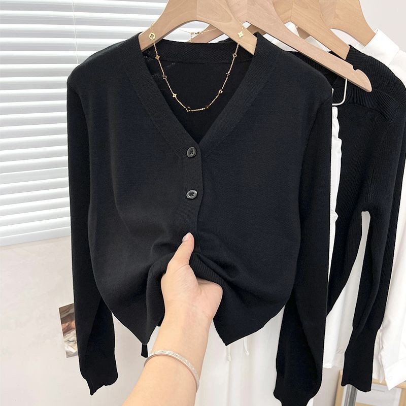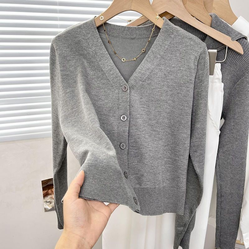 YAYUAN Ngắn đan cardigan nữ dài tay áo màu xám