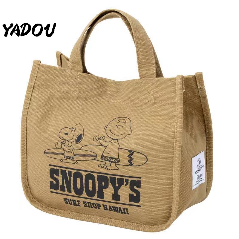 Yadou Túi Xách Tay Bằng Vải Canvas In Hình Snoopy Dễ Thương Có Ngăn Đựng Hộp Cơm Trưa