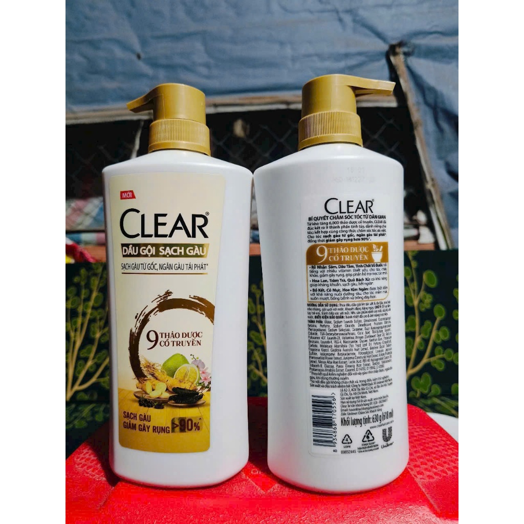 Dầu gội Clear 630g thào dược / Gừng Hoa cúc/ Hoa Anh Đào/ Táo