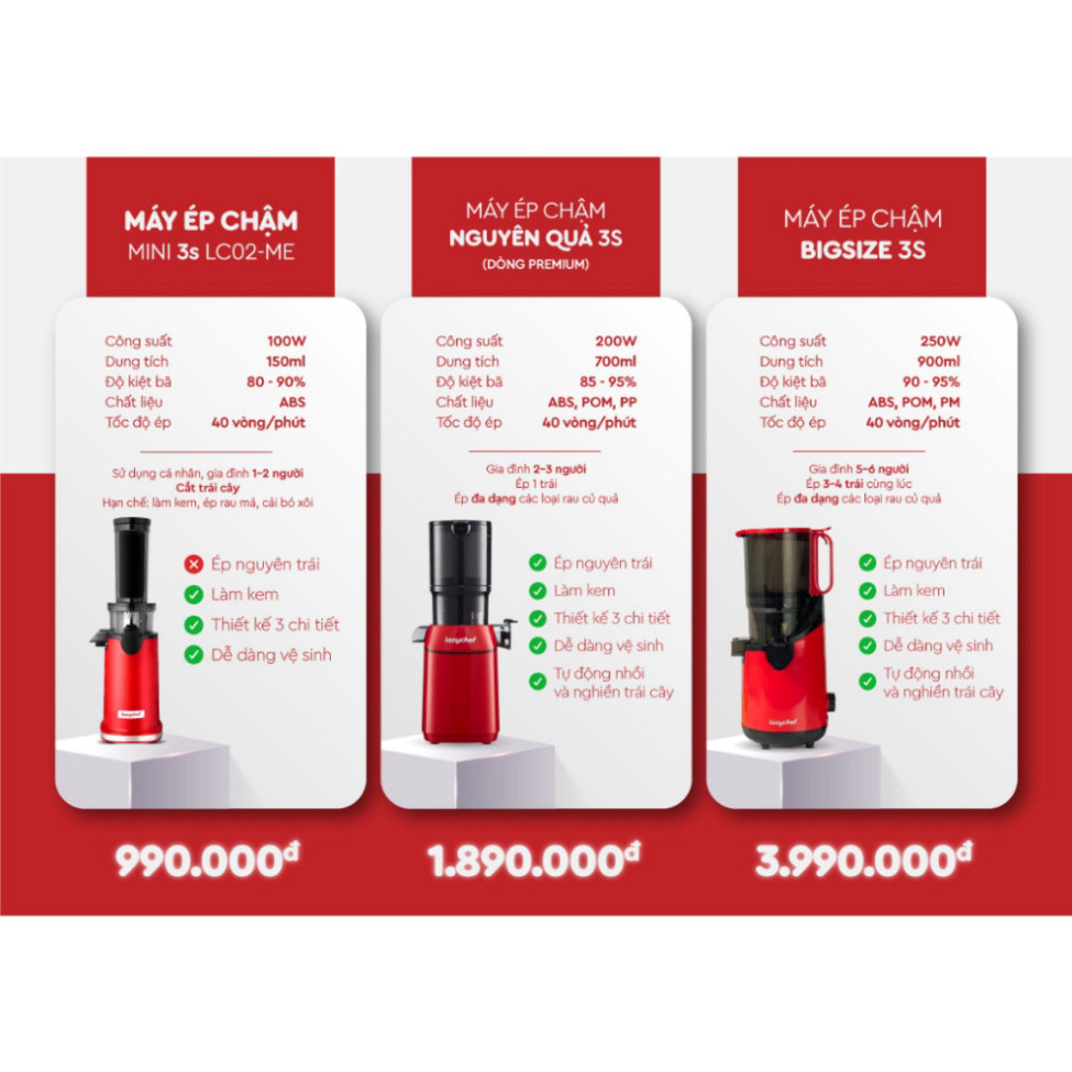 Máy ép chậm Lazychef LC-02ME mini 3S Làm Kem Hoa Quả, dễ dàng gấp gọn 3 Giây