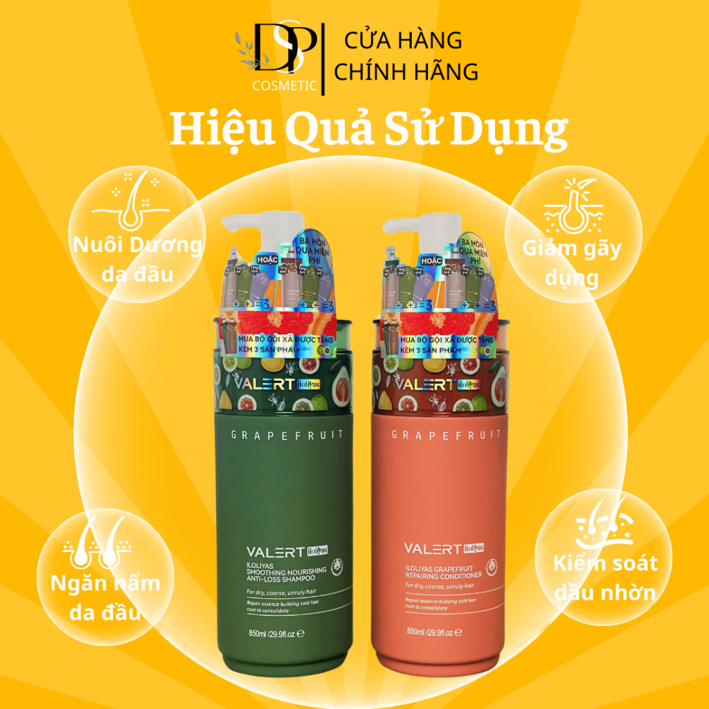 Dầu gội xả bưởi Valert Grapefruit 850ML phục hồi, chống rụng kích mọc tóc