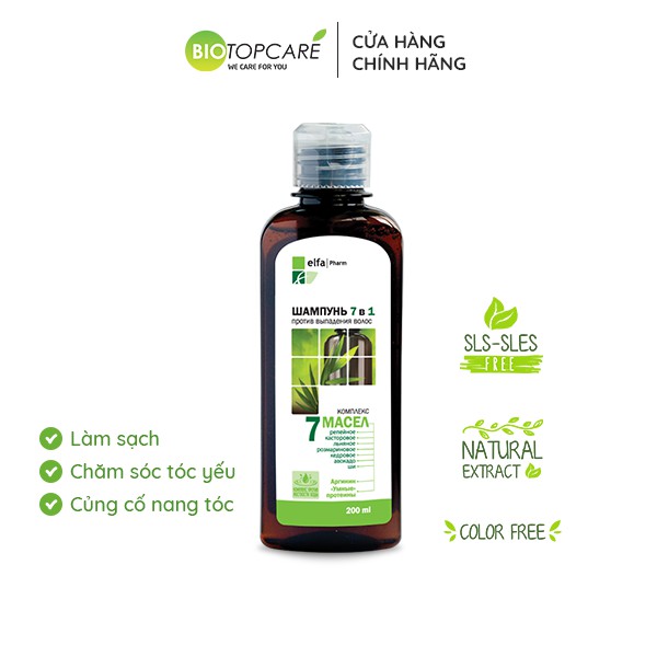 Dầu gội Elfa Pharm 7in1 chống rụng tóc chiết xuất 7 loại tinh dầu thảo dược 200ml - BioTopcare