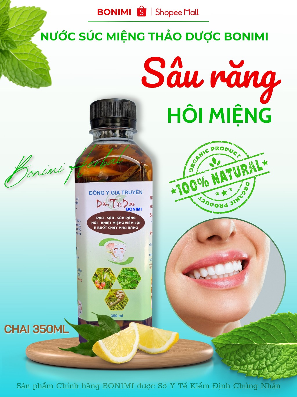 Nước Súc Miệng Dược Liệu Bonimi Chai 350ml. Đau Răng Thảo Dược Bonimi. Sâu Răng, Hôi Miệng.