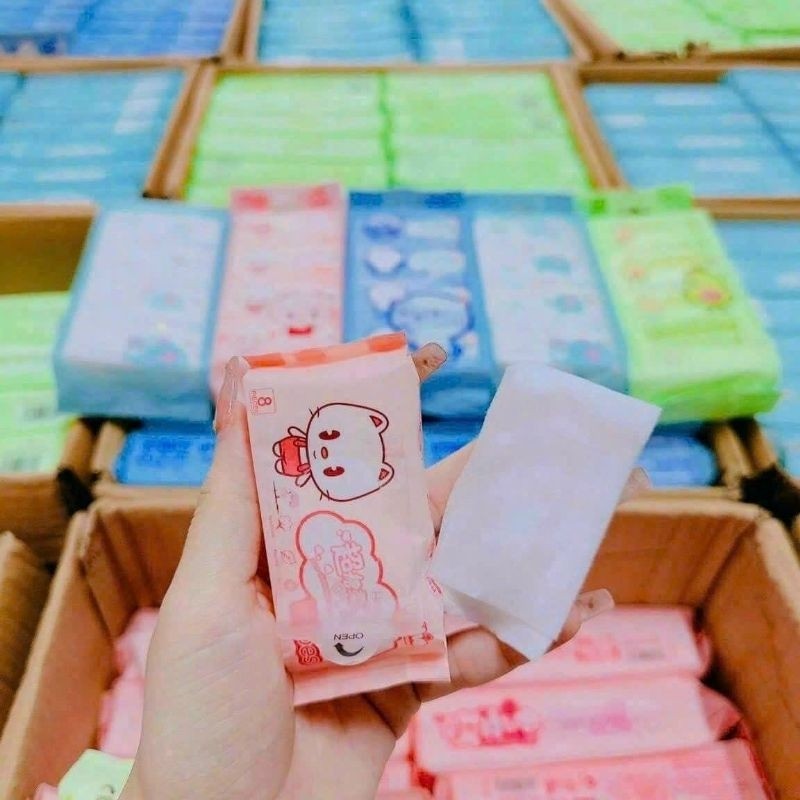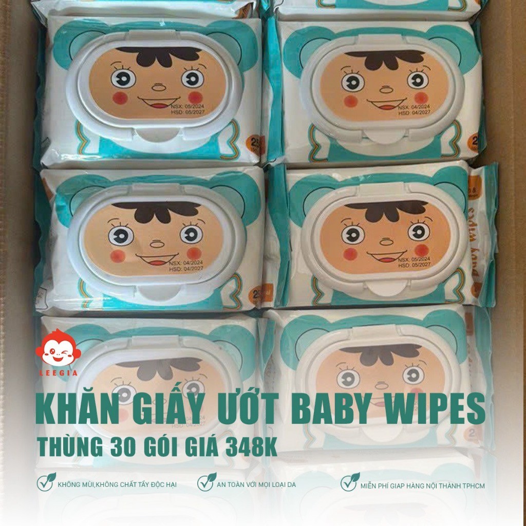 Khăn ướt Baby 650g vải dày an toàn cho da bé - 10 gói mini không cồn không paraben